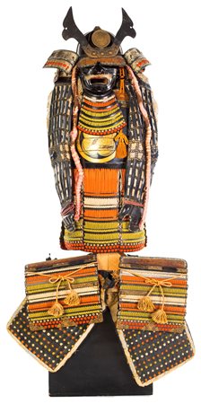 Antica armatura da samurai Yoroi con elmo, Giappone, primo periodo Showa...