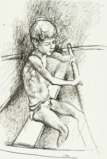 Renato Guttuso Bimbo con remo China su carta, cm. 49x34 Firmato in basso a destra.