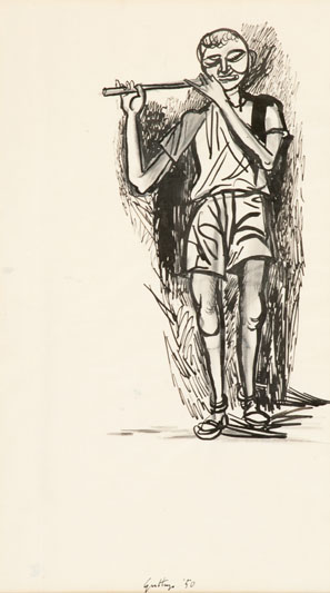 Renato Guttuso Bambino con piffero, 1950 China acquerellato, cm. 32,5x19 Firma e data in basso al centro