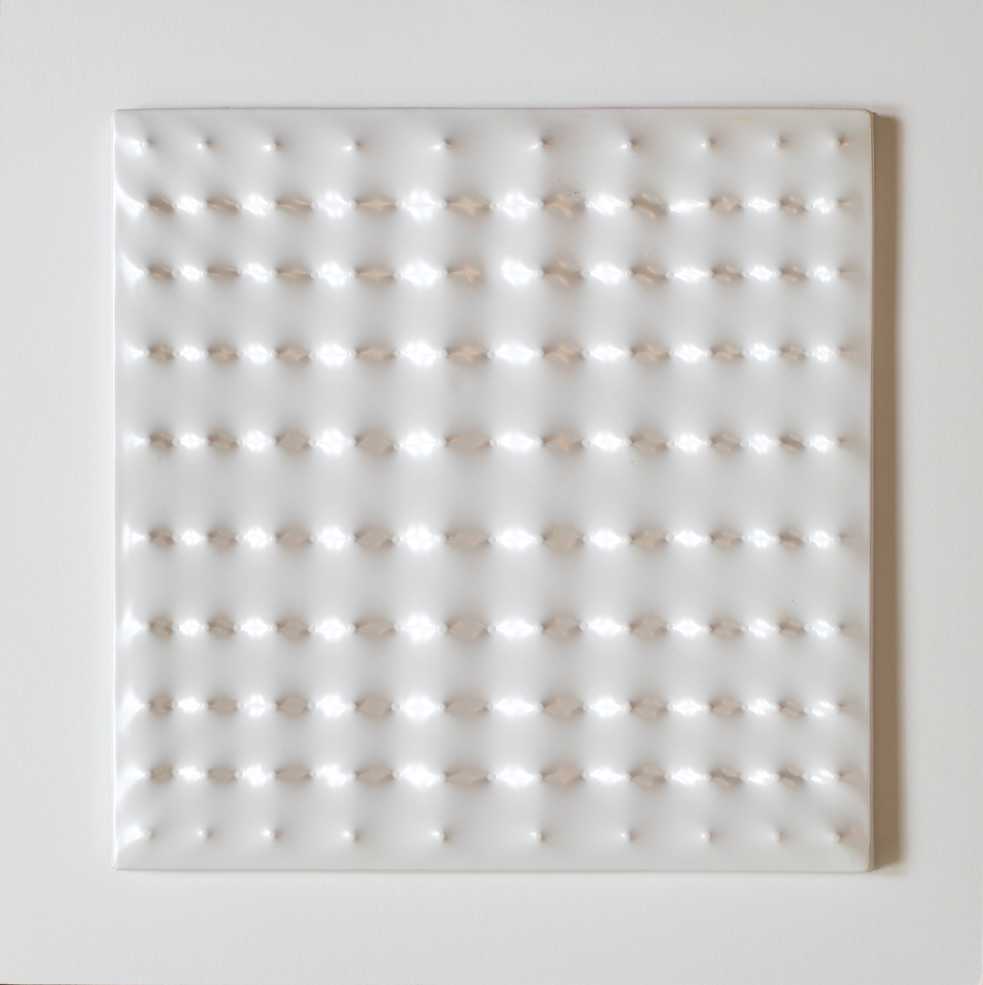 Enrico Castellani, Senza titolo, 1968 Rilievo in pvc bianco 30x30 Edizione di mille esemplari non firmati e non numerati, realizzati nel 1968 per il libro d'artista "Enrico Castellani Pittore" edito da Achille Mauri, con un testo di Vincenzo Agnetti e impaginato da Giorgio Colombo.