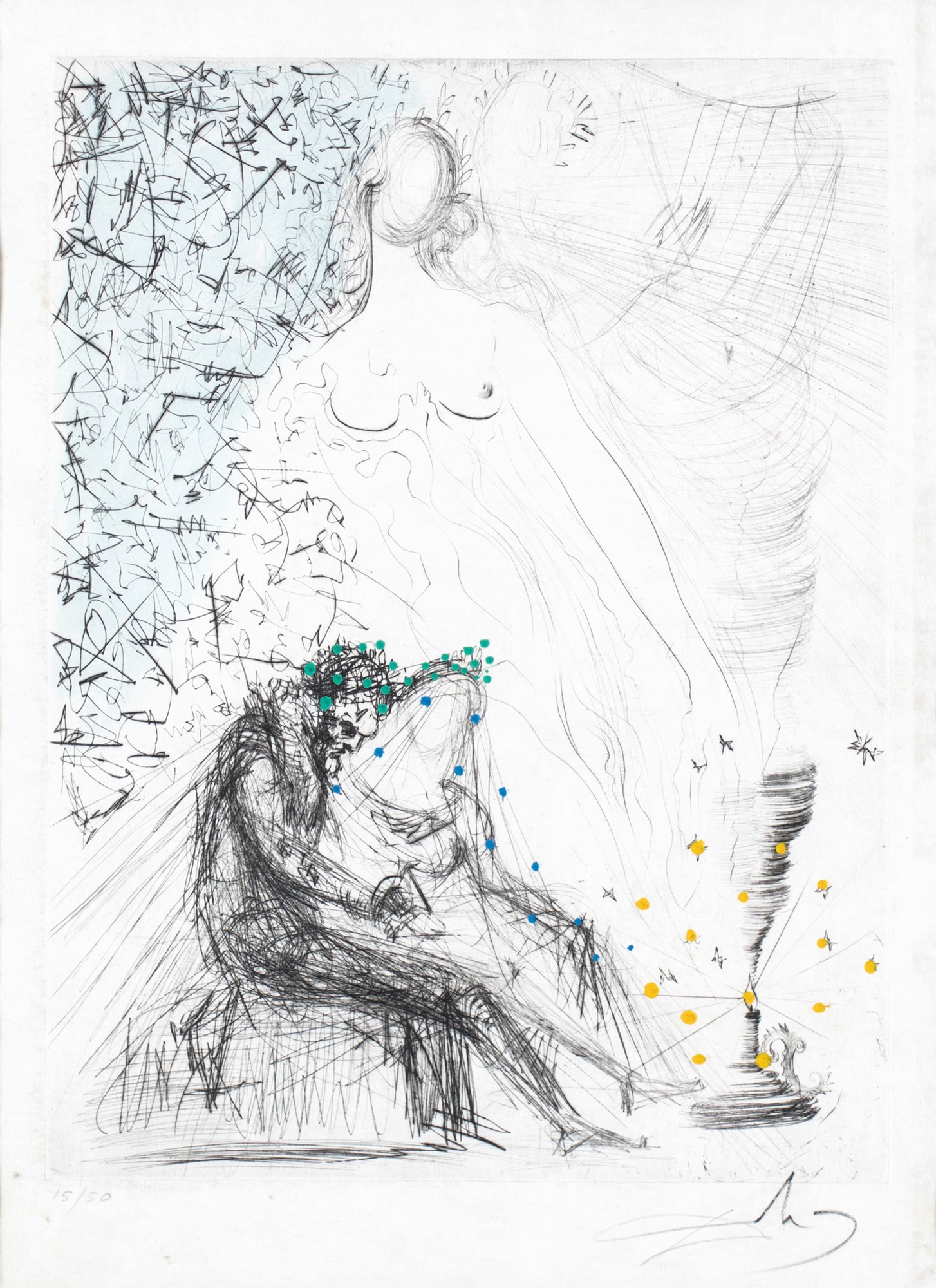 Salvador Dalì, Acquatinta, Acquaforte/acquatinta con interventi a tempera mm 315x240 (lastra) Firma e numerazione sul fronte in basso "Dalì 15/50".