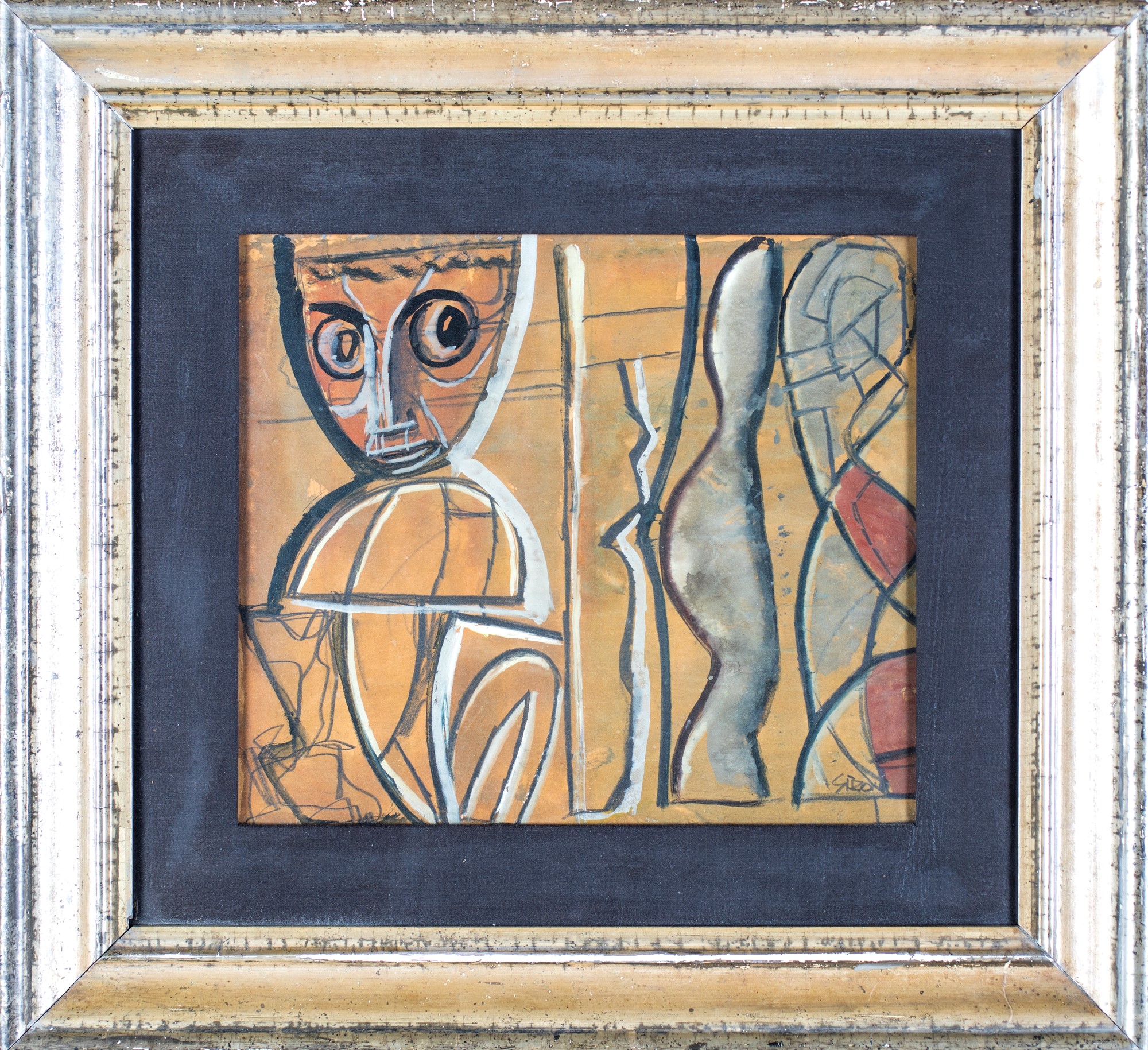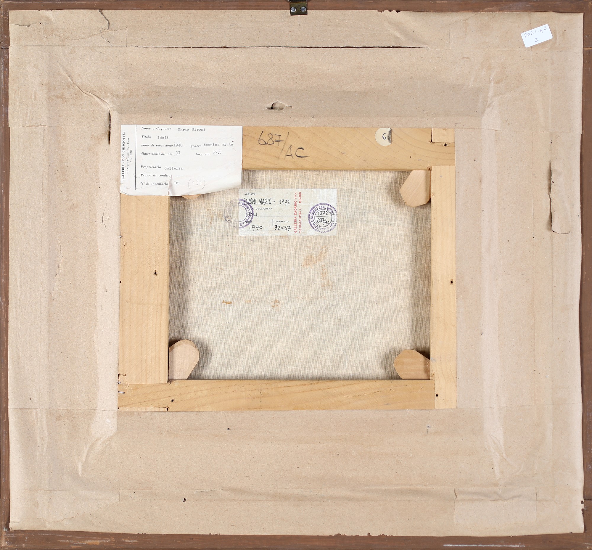 Mario Sironi, Idoli, 1945 Tempera, tempera diluita e matita grassa su carta applicata su tela cm 31,8x36,9 Al verso reca etichette della Galleria Don Chisciotte (Roma); Galleria Cadario (Milano). Firma apocrifa in basso a destra.