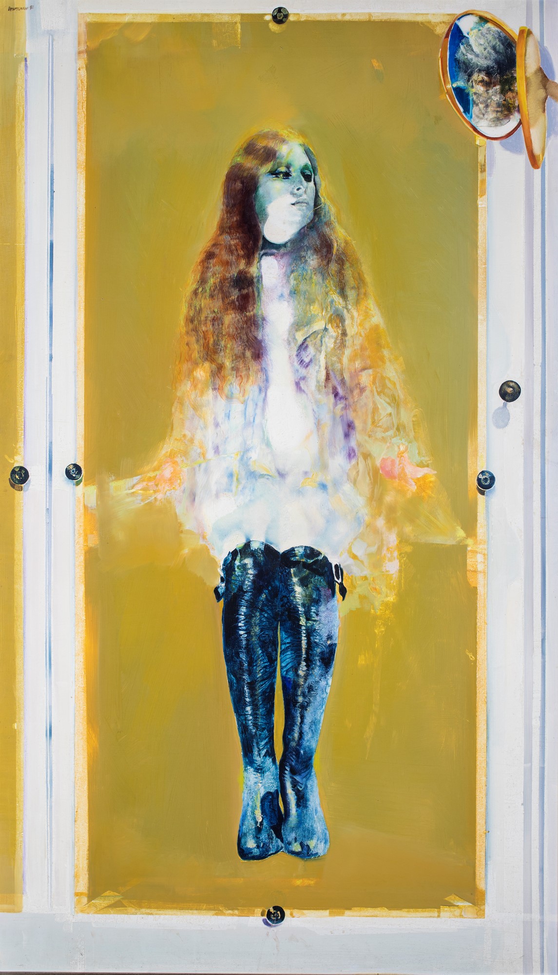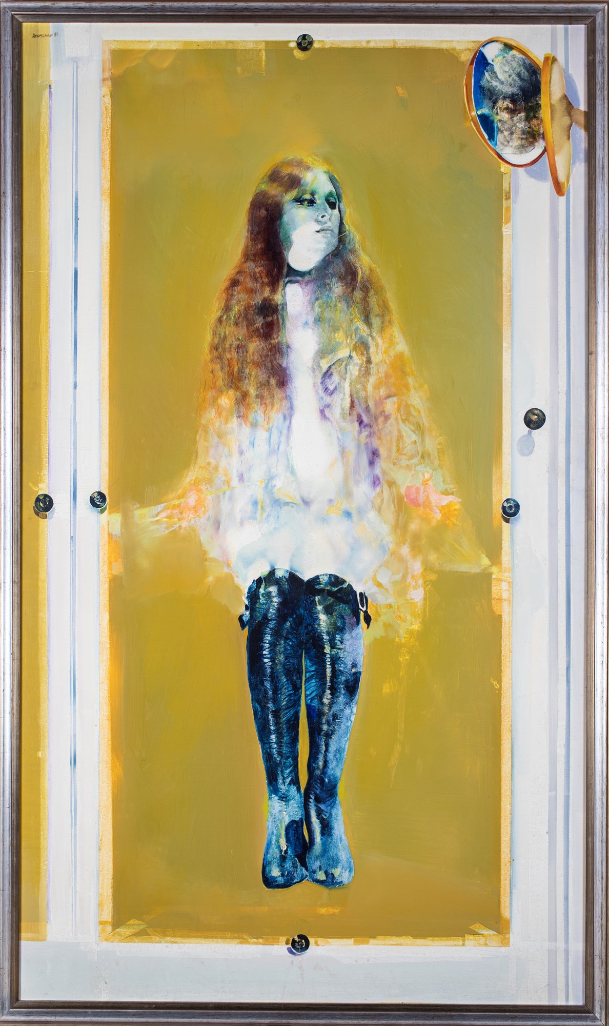 Renzo Vespignani, Netta allo specchio, 1971 Olio su tela cm 195x115 Firma e data in alto a sinistra "Vespignani 1971". Renzo Vespignani, Catalogo Ragionato dei Dipinti 1943-2001, ripr. pag. 256 n. 596