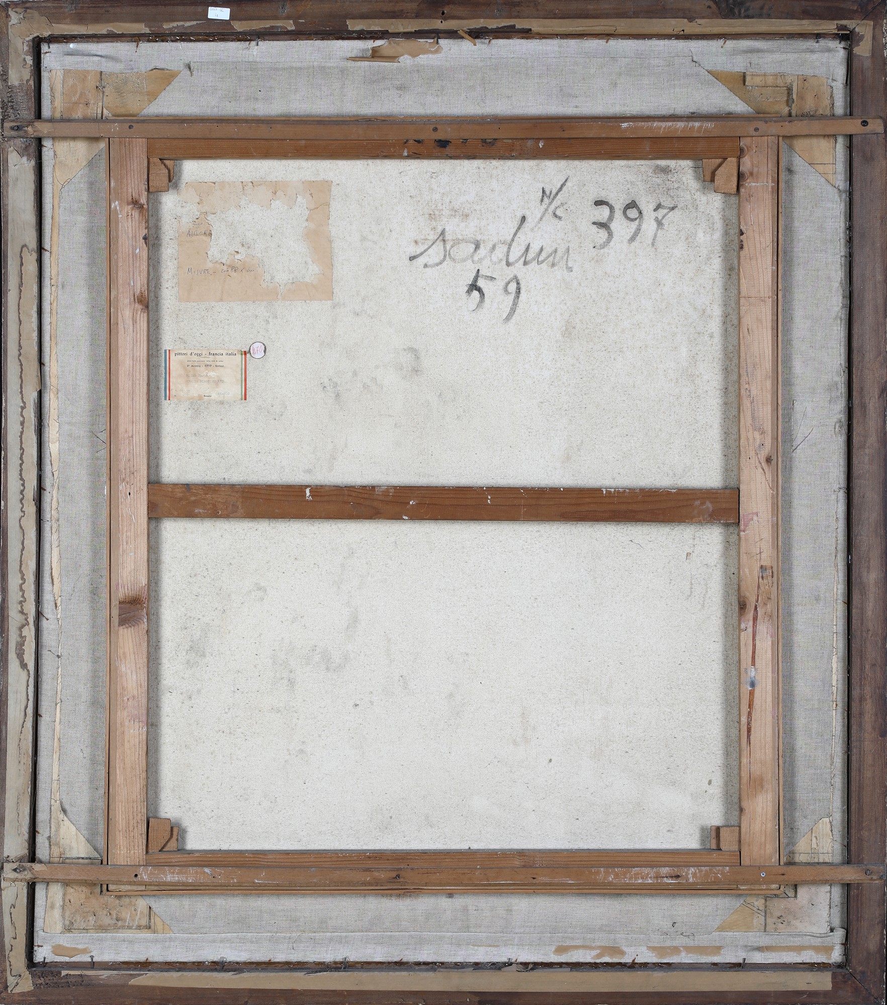 Piero Sadun, Spazio plastico N. 2, 1959 Olio su tela cm 102x88 Firma e data al verso "Sadun '59". Etichetta della mostra "Pittori d'oggi - Francia Italia tenutasi nel 1959 a Torino"