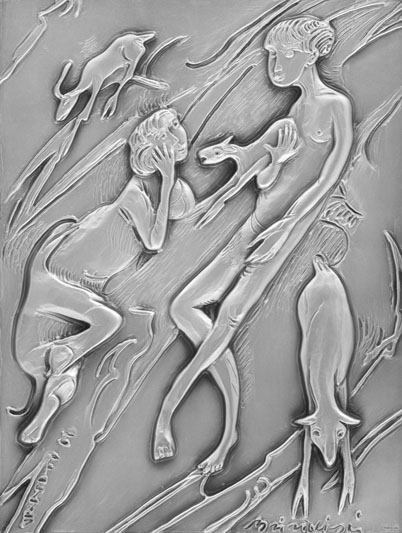Remo Brindisi Pastorale Multiplo in argento, cm. 24,5x18 Firmato in basso a destra.