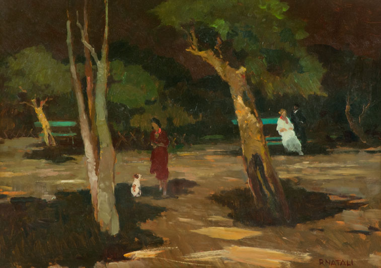 Renato Natali Al parco Olio su faesite, cm. 50x70 Firmato in basso a destra. Sul verso: firma.