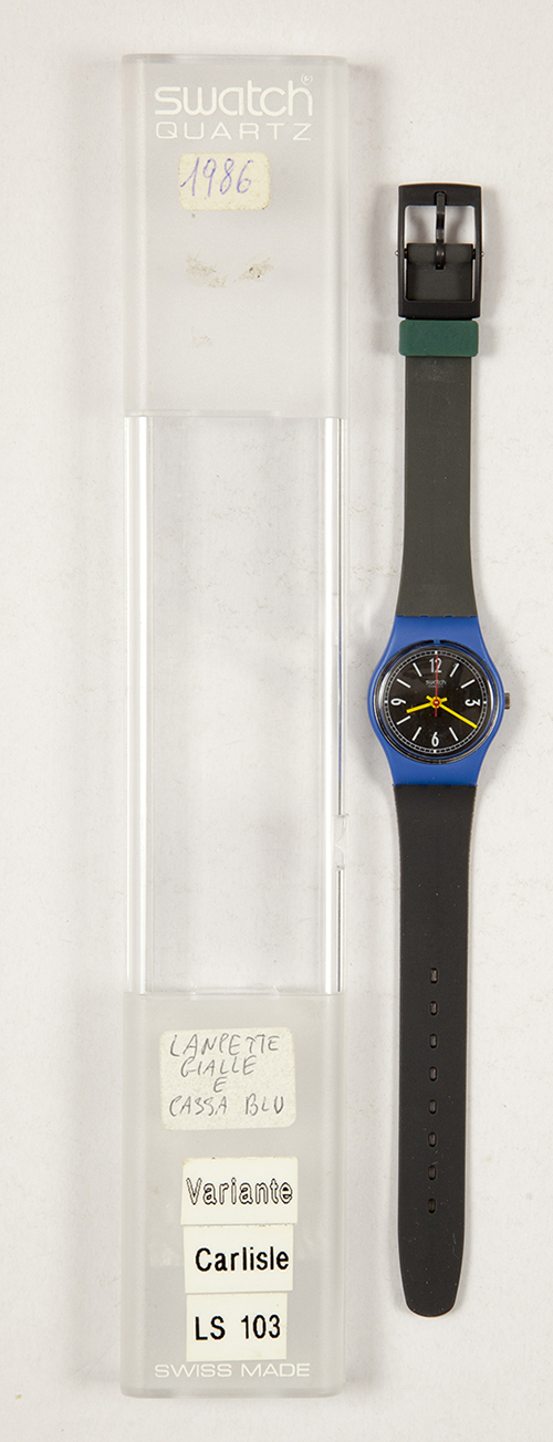 DIFFERENZE: cassa blu, lancette delle ore e dei minuti gialle e lancetta dei secondi rossa