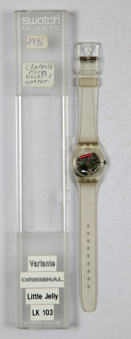 DIFFERENZE: senza anello argentato, lancette delle ore e dei minuti verdi e lancetta dei secondi fuxia