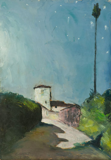 Giovanni Costetti Paesaggio, 1924 Olio su cartone, cm. 50x35,5 Firma e data in basso a sinistra. Autentica dell'Archivio delle Opere Giovanni e Romeo Costetti, a cura di Giuseppe Paccagnini, su foto.