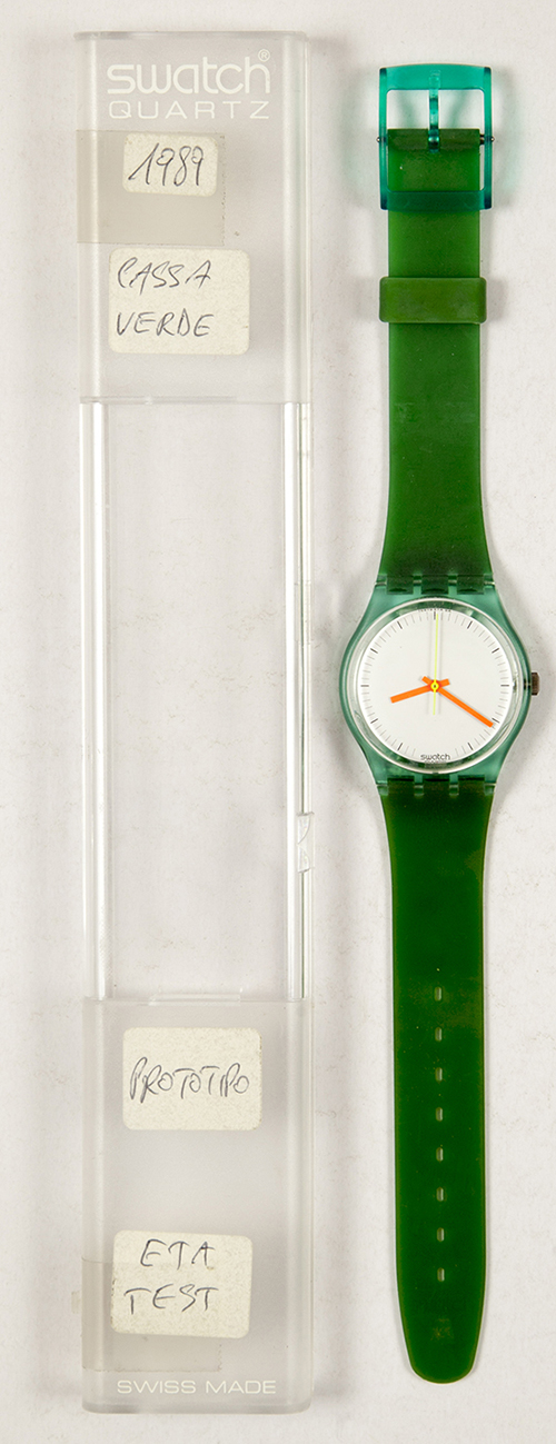 NOTE: Cassa e cinturino verde trasparente, quadrante ETA TEST: lancette ore e minuti arancioni mentre quella dei secondi Ë gialla. Questo Ë un orologio test prima della produzione da considerarsi pezzo unico.
