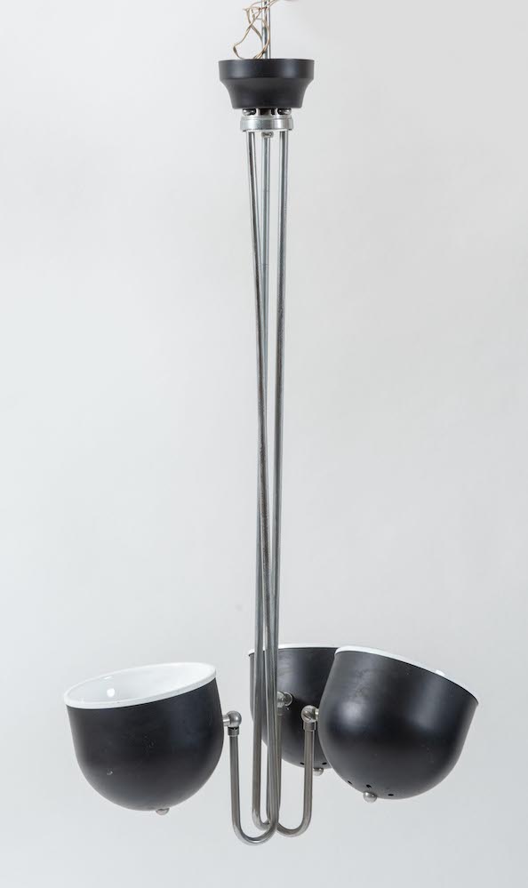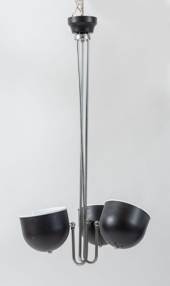 Lampadario in metallo cromato. Prod. Italia, 1960 ca. Cm 120x50x50.