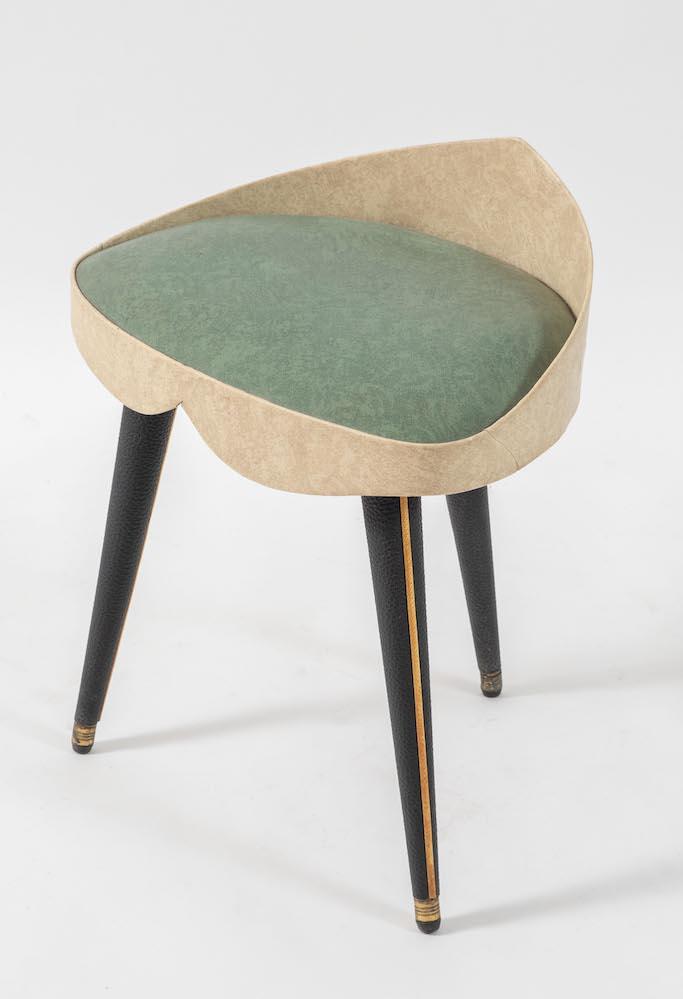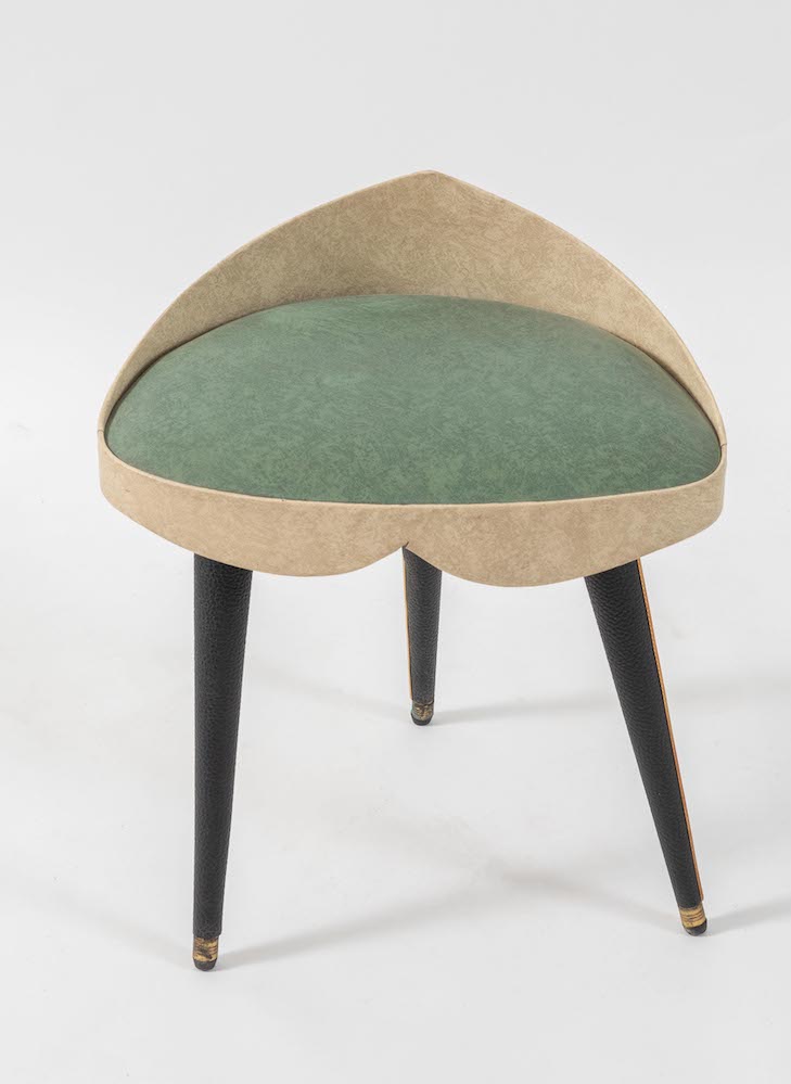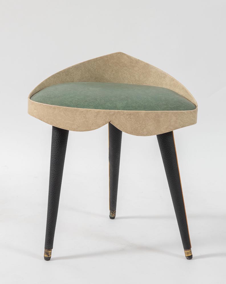 UMBERTO MASCAGNI, attr. Sgabello in legno rivestito in pelle. Prod. Umberto Mascagni Att., Italia, 1950 ca. Cm 49x43x31.