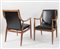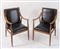 SILVIO CAVATORTA Coppia di poltroncine in legno di noce e seduta in pelle....