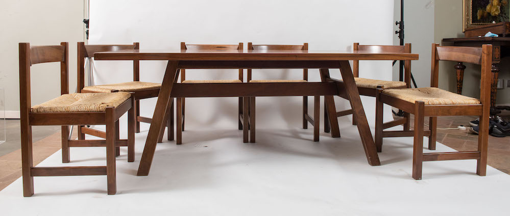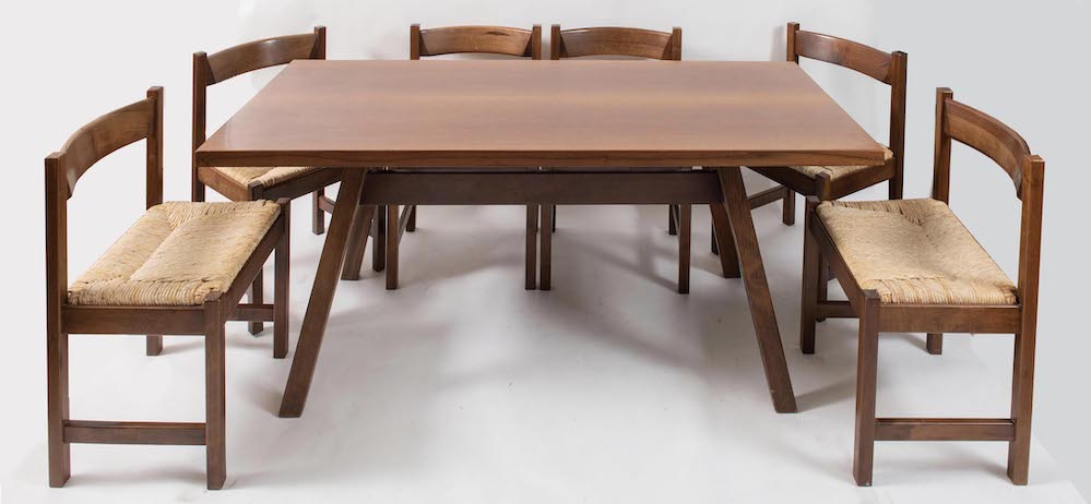 GIOVANNI MICHELUCCI Tavolo in legno con sei sedie della serie Torbecchia....