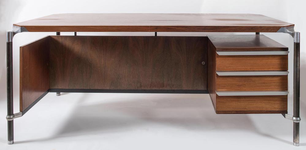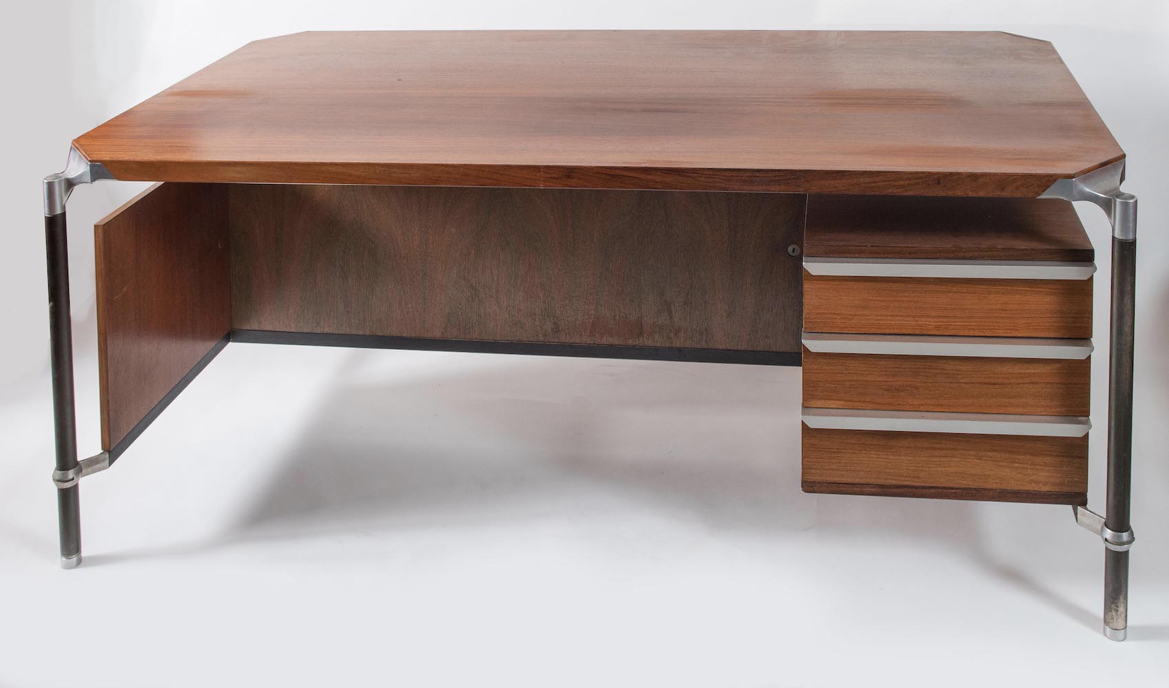 ICO & LUISA PARISI Scrivania in palissandro con struttura in metallo con tre...