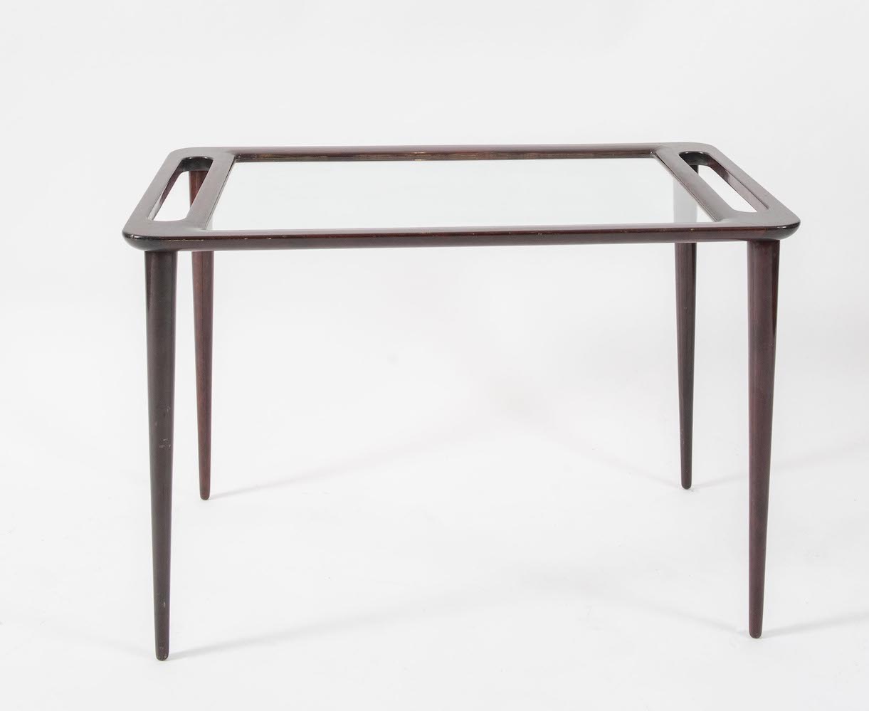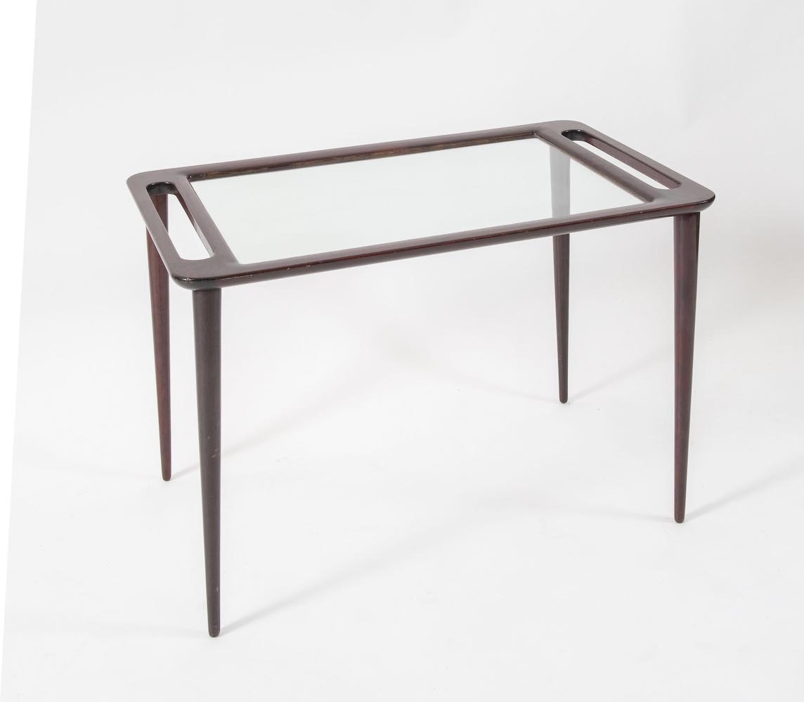 ICO PARISI Tavolo da caffè in legno con piano in cristallo modello DB1A 405. Prod. Angelo De Baggis, Italia, 1950 ca. Cm 69x45x44. Pubblicazioni: Ico Parisi, catalogo ragionato 1936-1960, SilvanaEditoriale, Roberta Lietti, 2017, pag. 505.