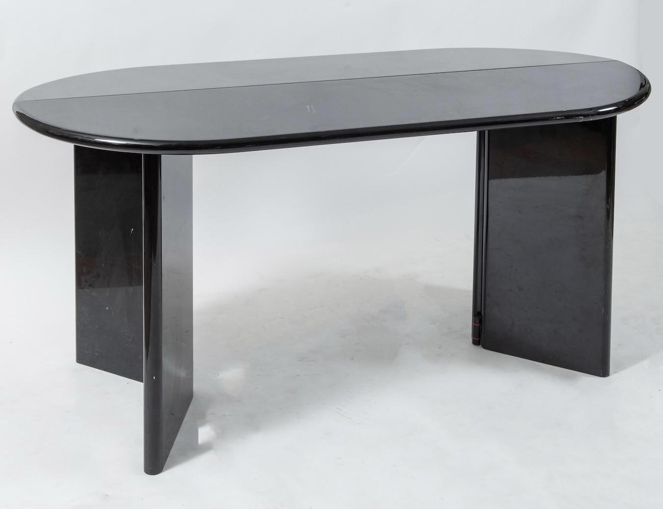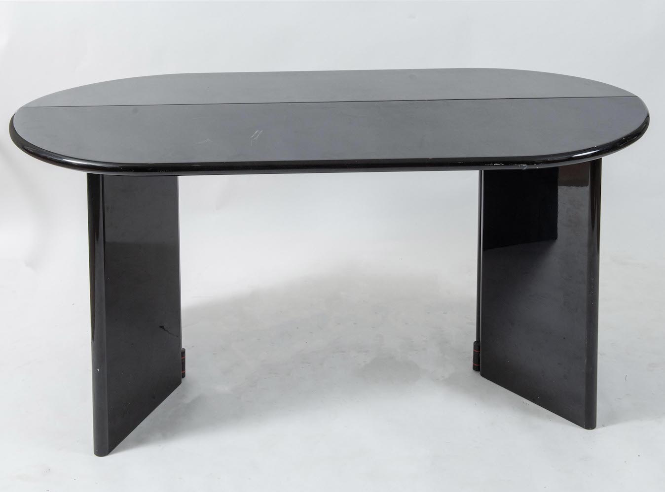 KAZUHIDE TAKAHAMA Tavolo in legno laccato apribile mod. Antella. Lievi difetti. Prod. Simon-Ultramobile, Italia, 1978 ca. Cm 72x63x169/72x122x169. Pubblicazioni: The adventure of design: Gavina, Jaca Book, Virgilio Vercelloni, 1987.