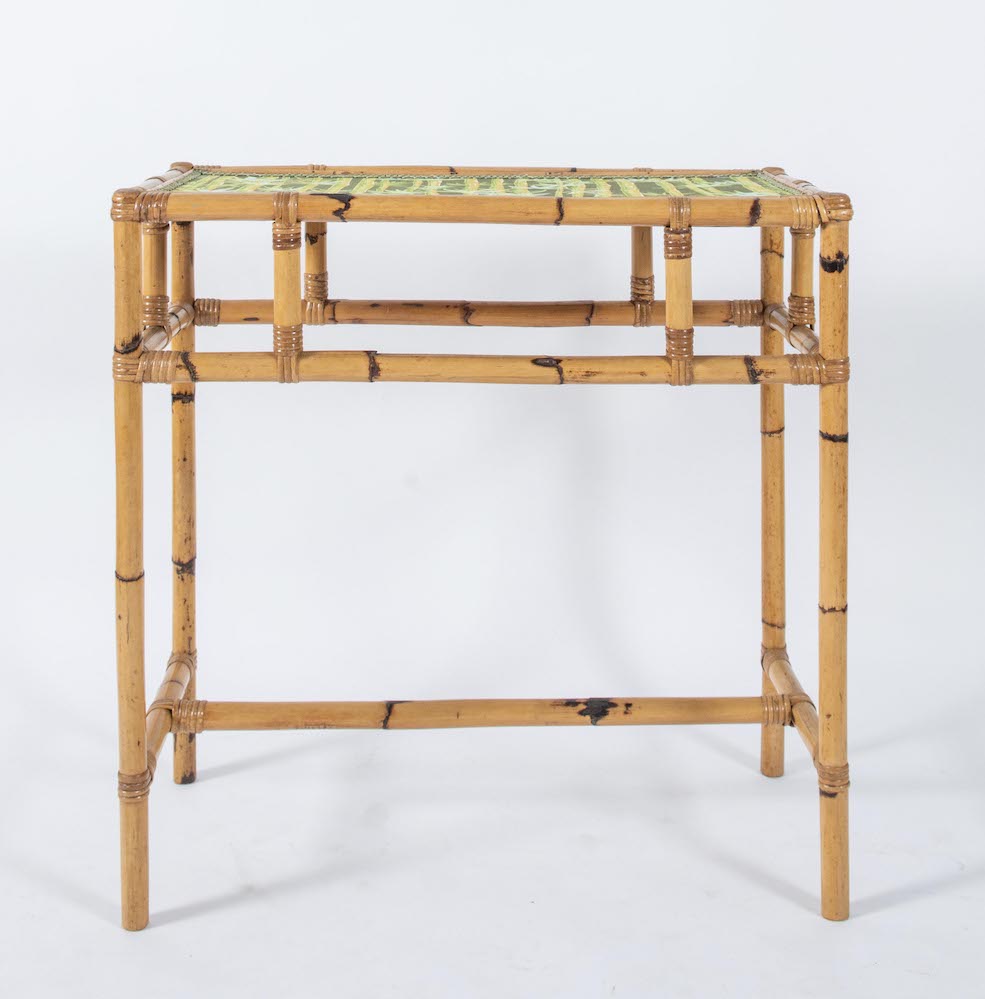 VALENTINO PIU’ Consolle in bamboo con legature in cuoio e tessuto con...