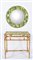 VALENTINO PIU’ Consolle in bamboo con legature in cuoio e tessuto con specchio in vetro e cornice in tessuto. Prod. Valentino più, Italia, 1980 ca. Consolle: cm 85x41x85; specchio: cm 76(diametro)x2. Pubblicazioni: Catalogo Valentino più.
