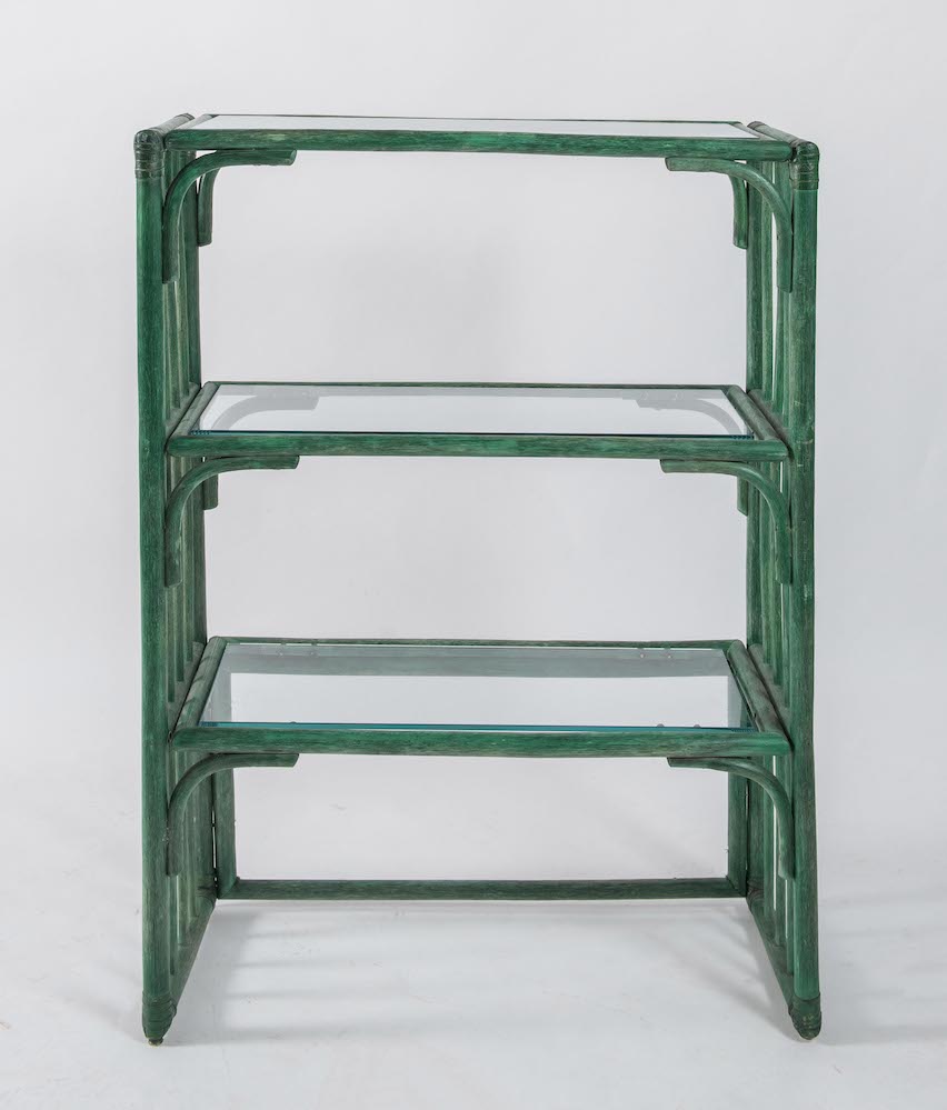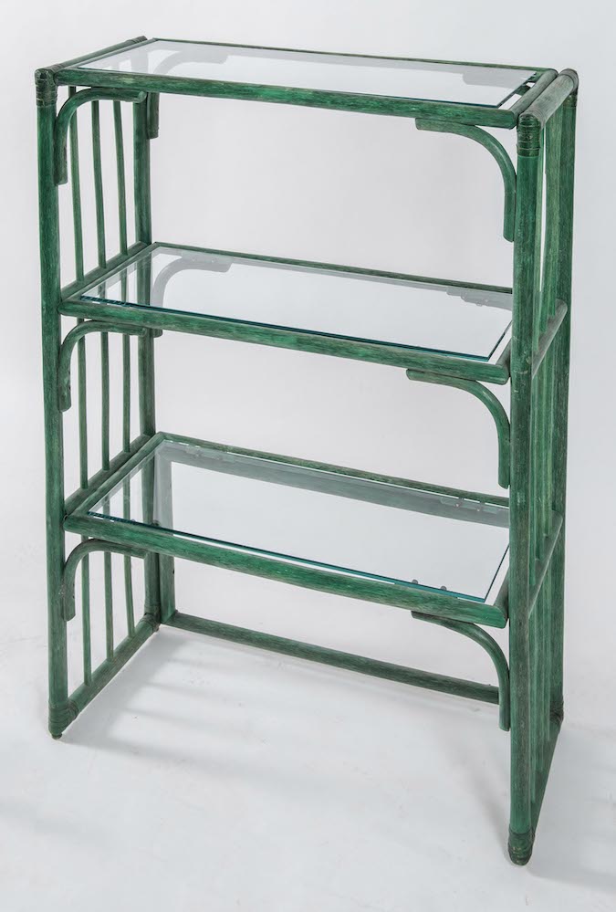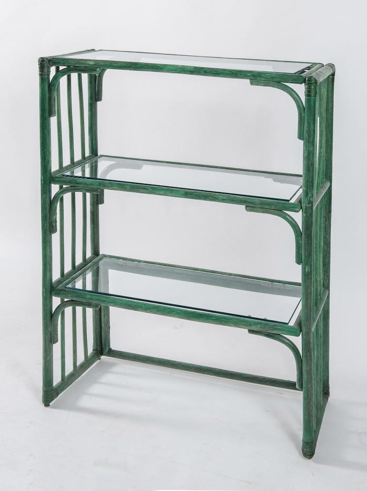 Lotto 150 | Libreria in bamboo, legature in cuoio e con ripiani in vetro. Prod. Italia,...