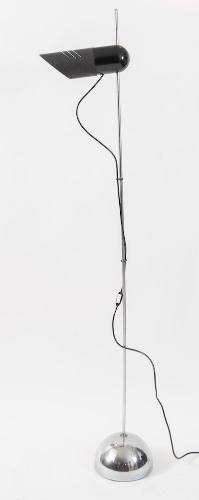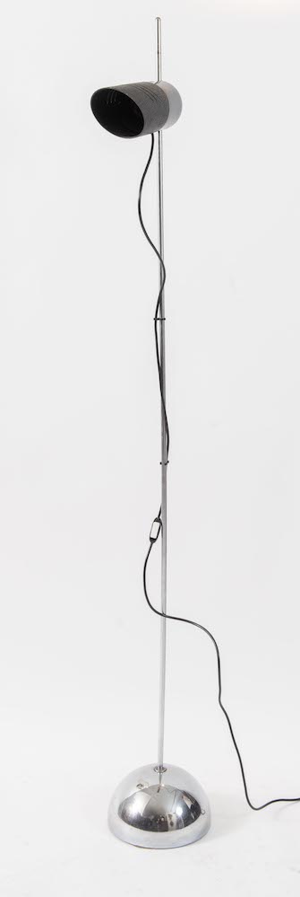 CARLO URBINATI Lampada da terra in metallo cromato e satinato modello Galdino. Marchio originale. Prod. Guzzini, Italia, 1970 ca. Cm 173x33x33.