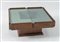 Tavolo da caffè in legno con due ripiani in vetro apribili. Prod. Italia, 1970 ca. Cm 35x77x77.