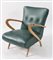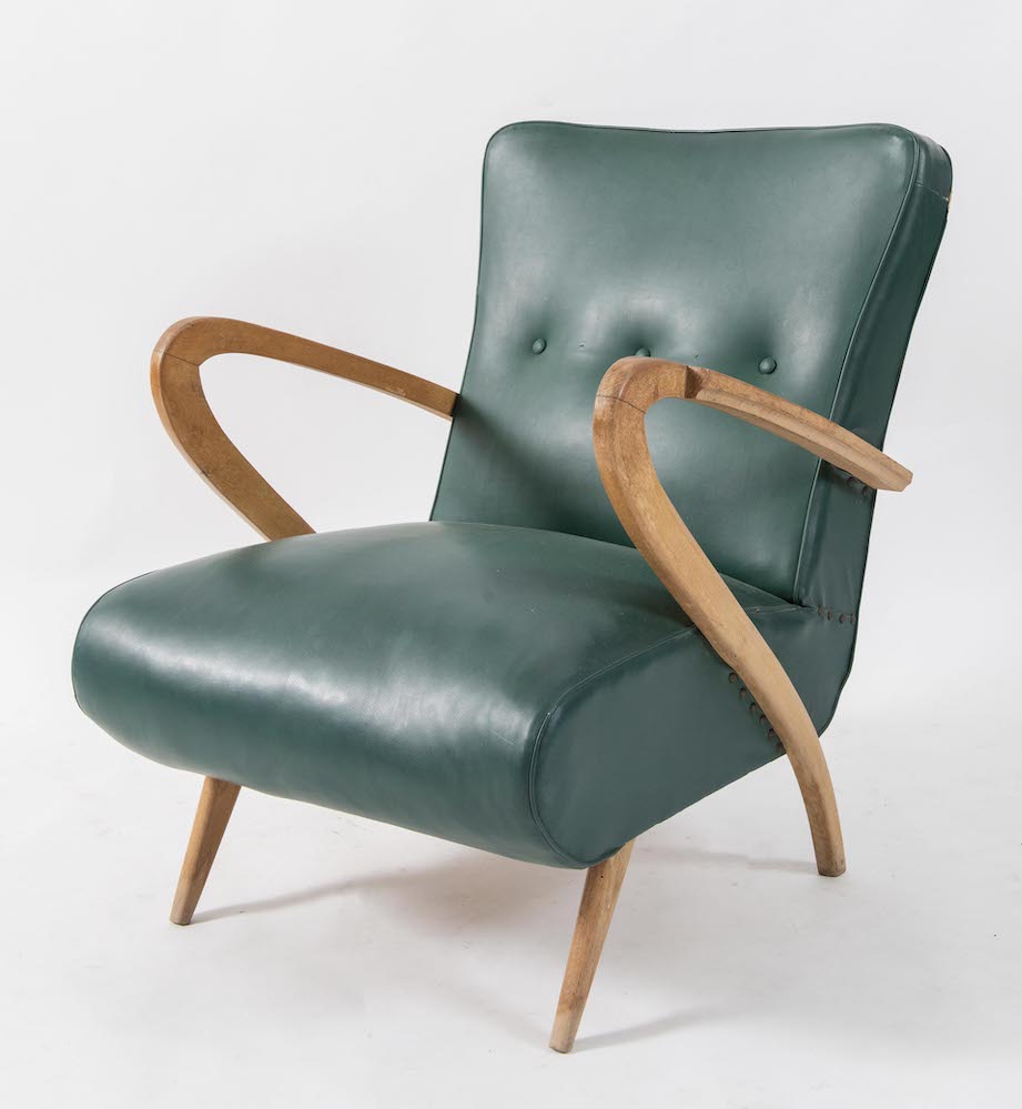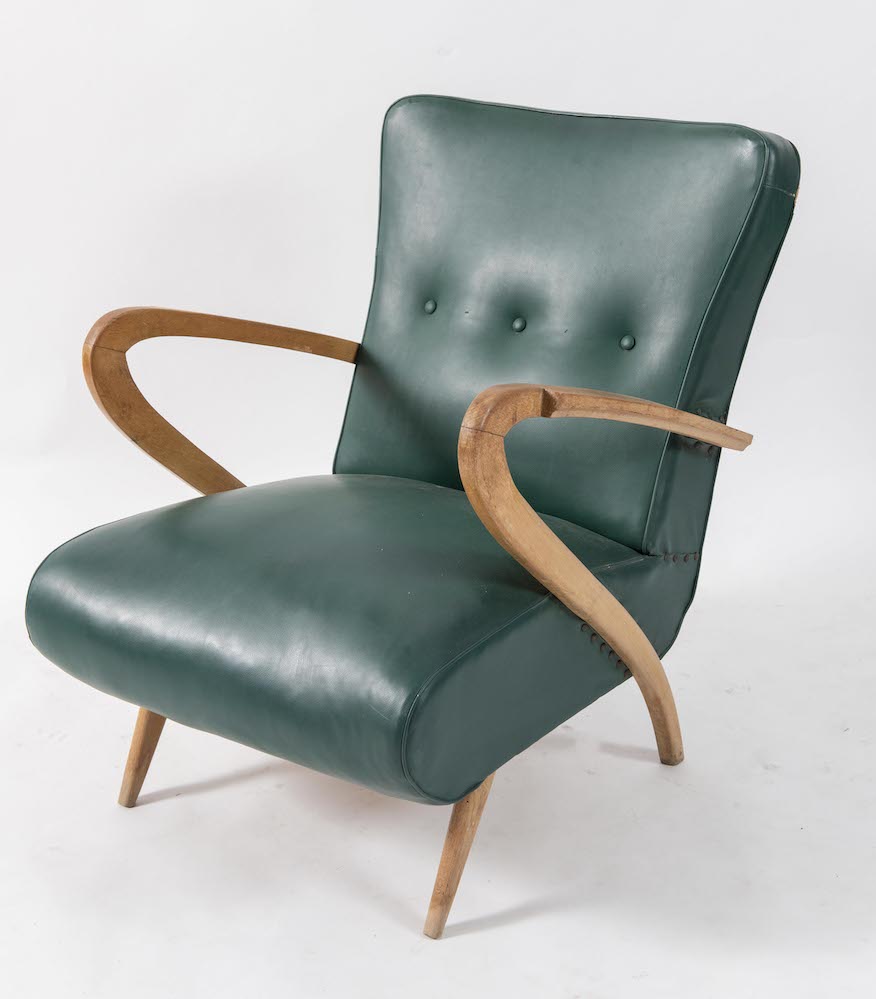 GUGLIELMO ULRICH, attr. Poltrona in legno rivestita in pelle. Prod. Italia, 1950 ca. Cm 80x60x70.