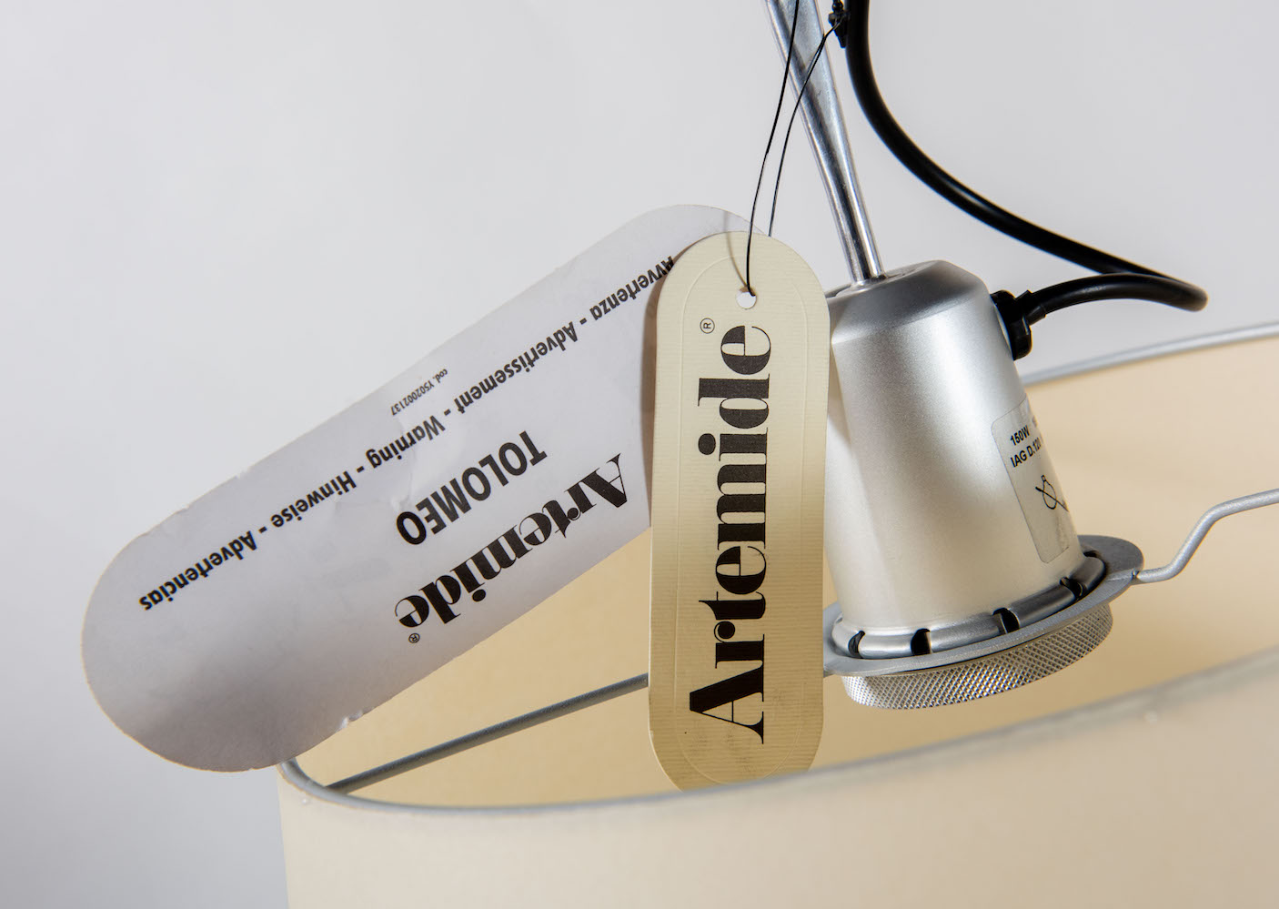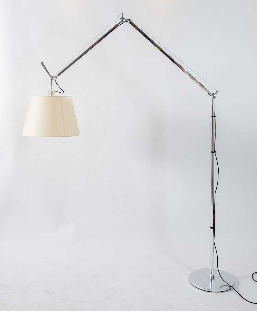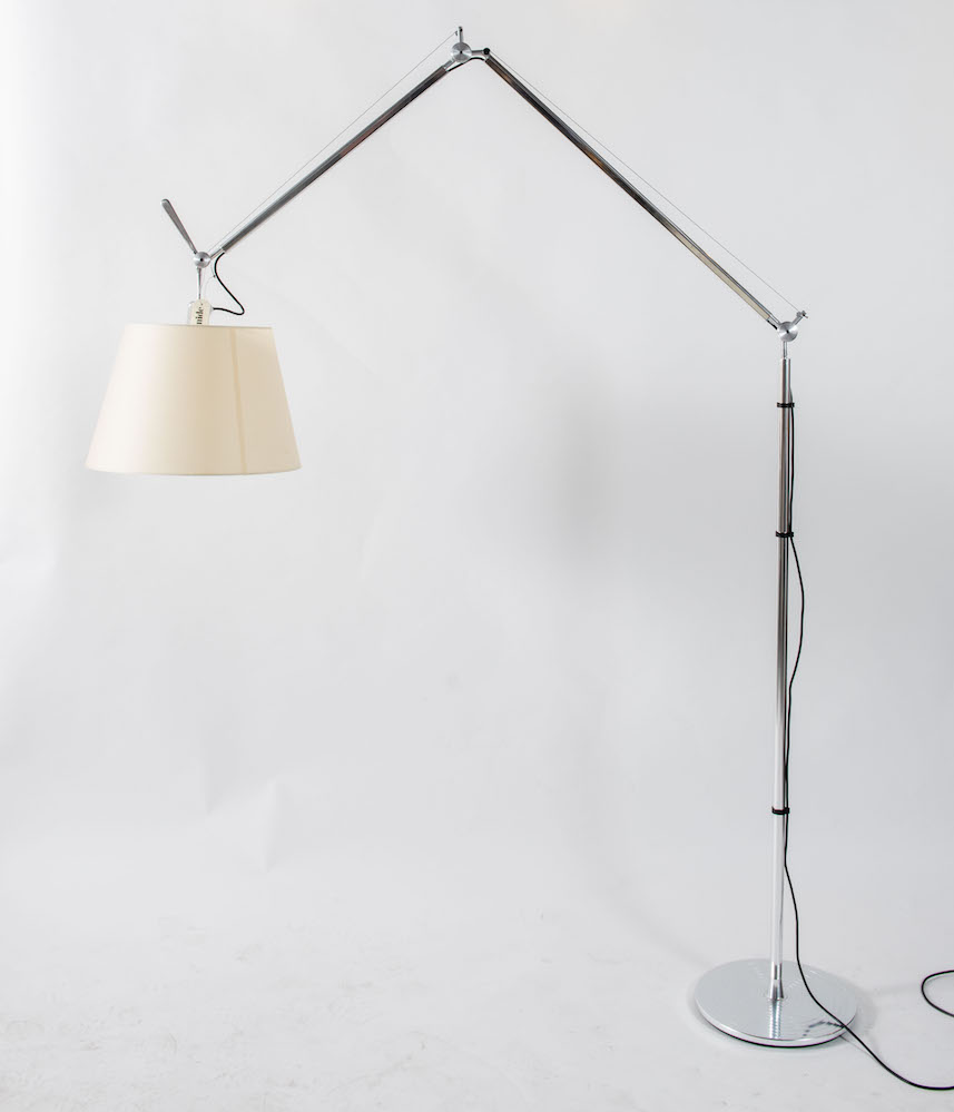 MICHELE DE LUCCHI & GIANCARLO FASSINA Lampada da terra in metallo con paralume in tessuto modello ’Tolomeo’. Marchio originale. Prod. Artemide, Italia, 1987 ca. Cm 250x156x104.