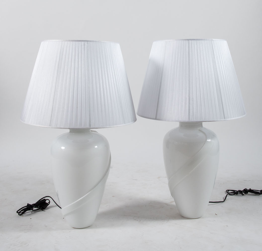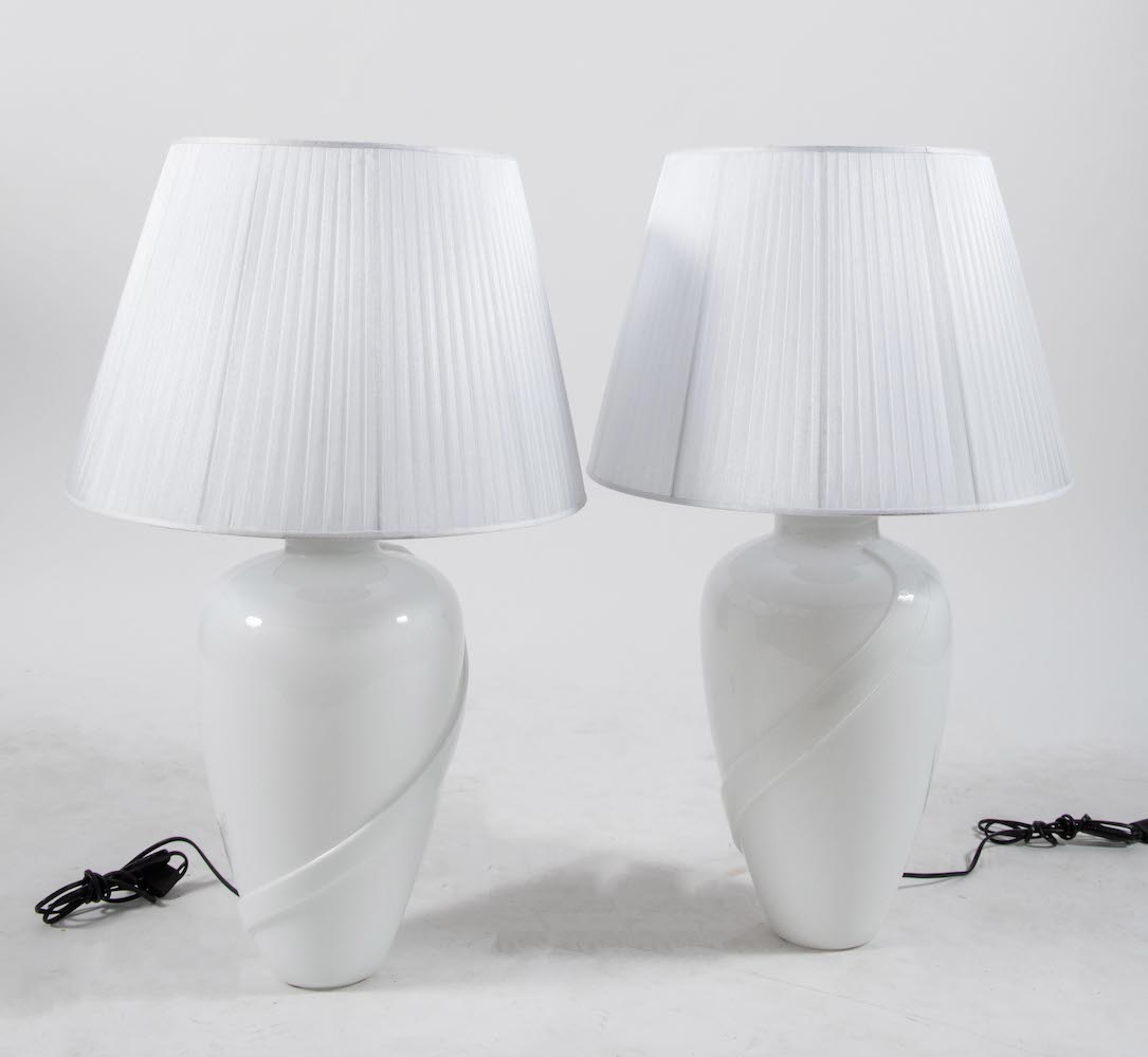 MURANO Coppia di lampade da tavolo in vetro con struttura in metallo. Marchio...