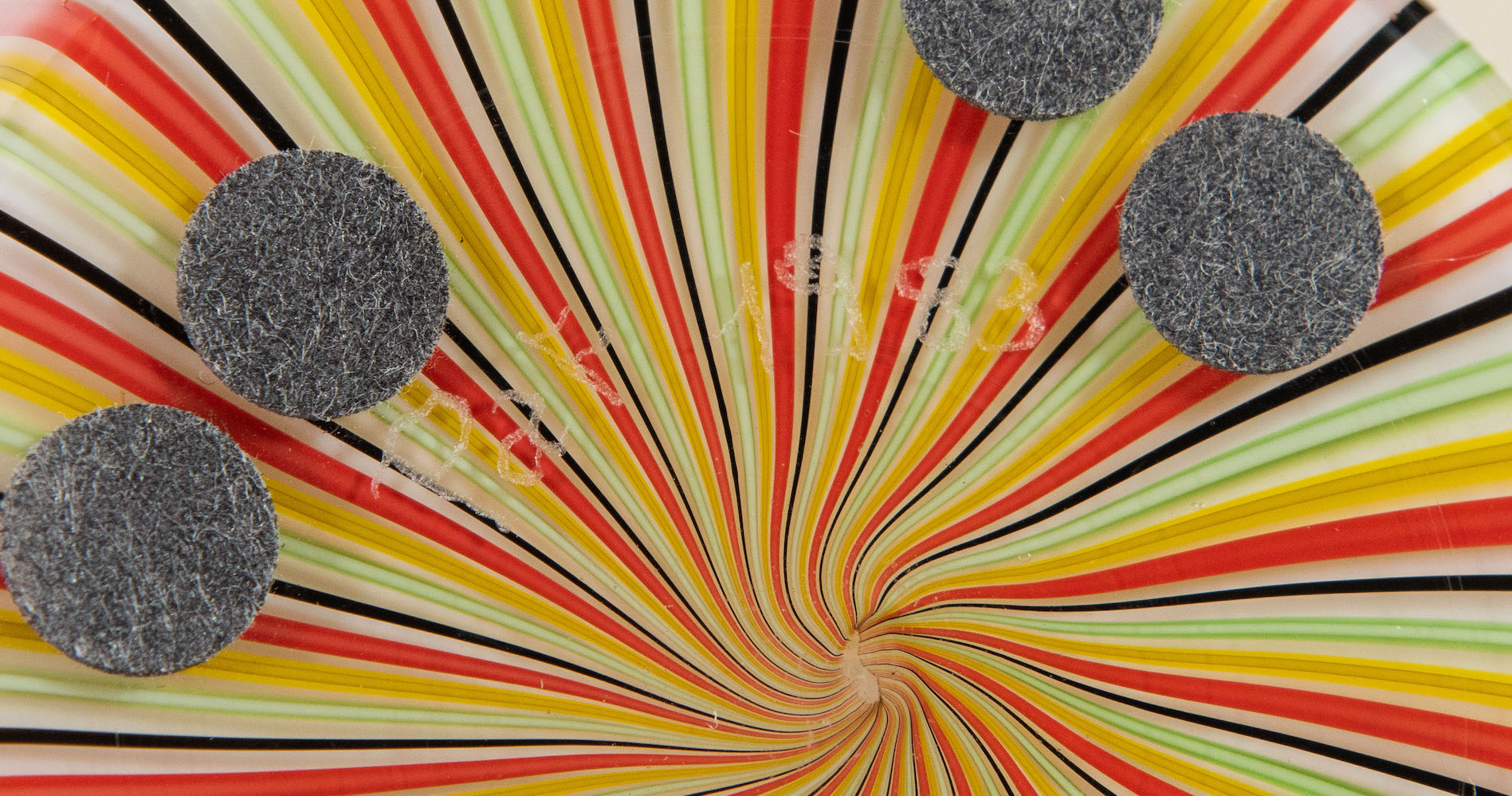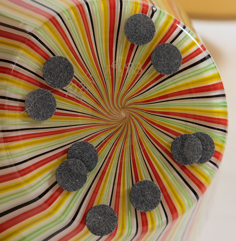 LINO TAGLIAPIETRA, attr. Lampada da tavolo in vetro con doppia illuminazione con paralume in tessuto. Marchio originale. Prod. PAF, Italia, 1983. Cm 48x45x45.