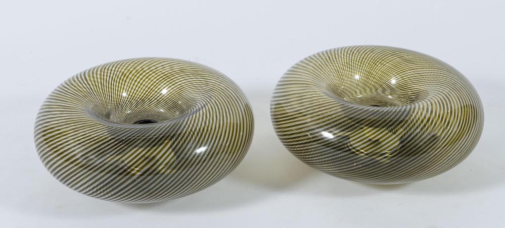 Lotto 221 | MURANO, attr. Coppia di plafoniere in vetro con struttura in metallo. Prod....
