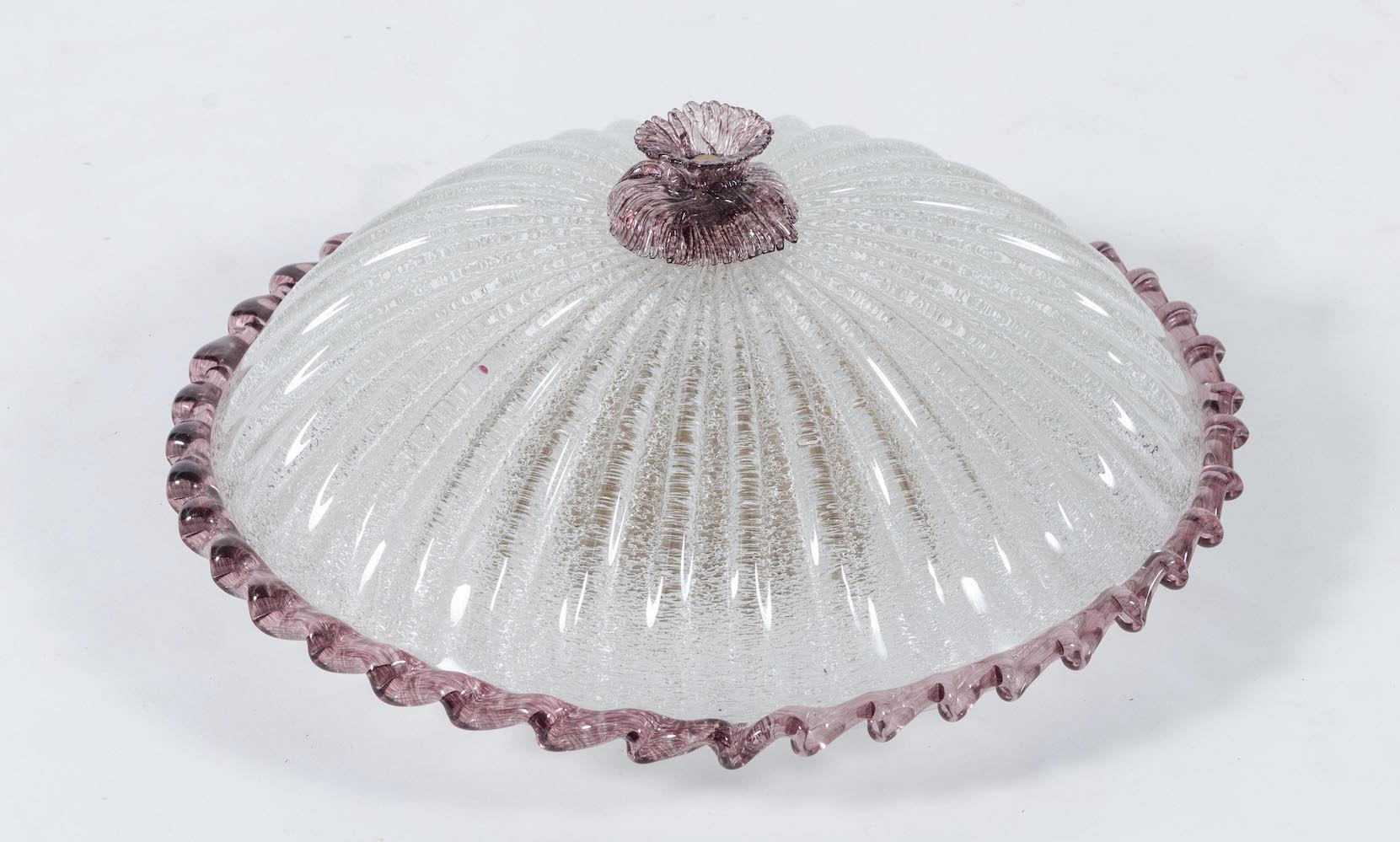 BAROVIER & TOSO Lampada da soffitto in vetro soffiato e con struttura in metallo, modello ‘Fiorita’. Prod. Barovier&Toso, Italia, 1970 ca. Cm 15x44x44. Pubblicazioni: Catalogo Barovier&Toso.