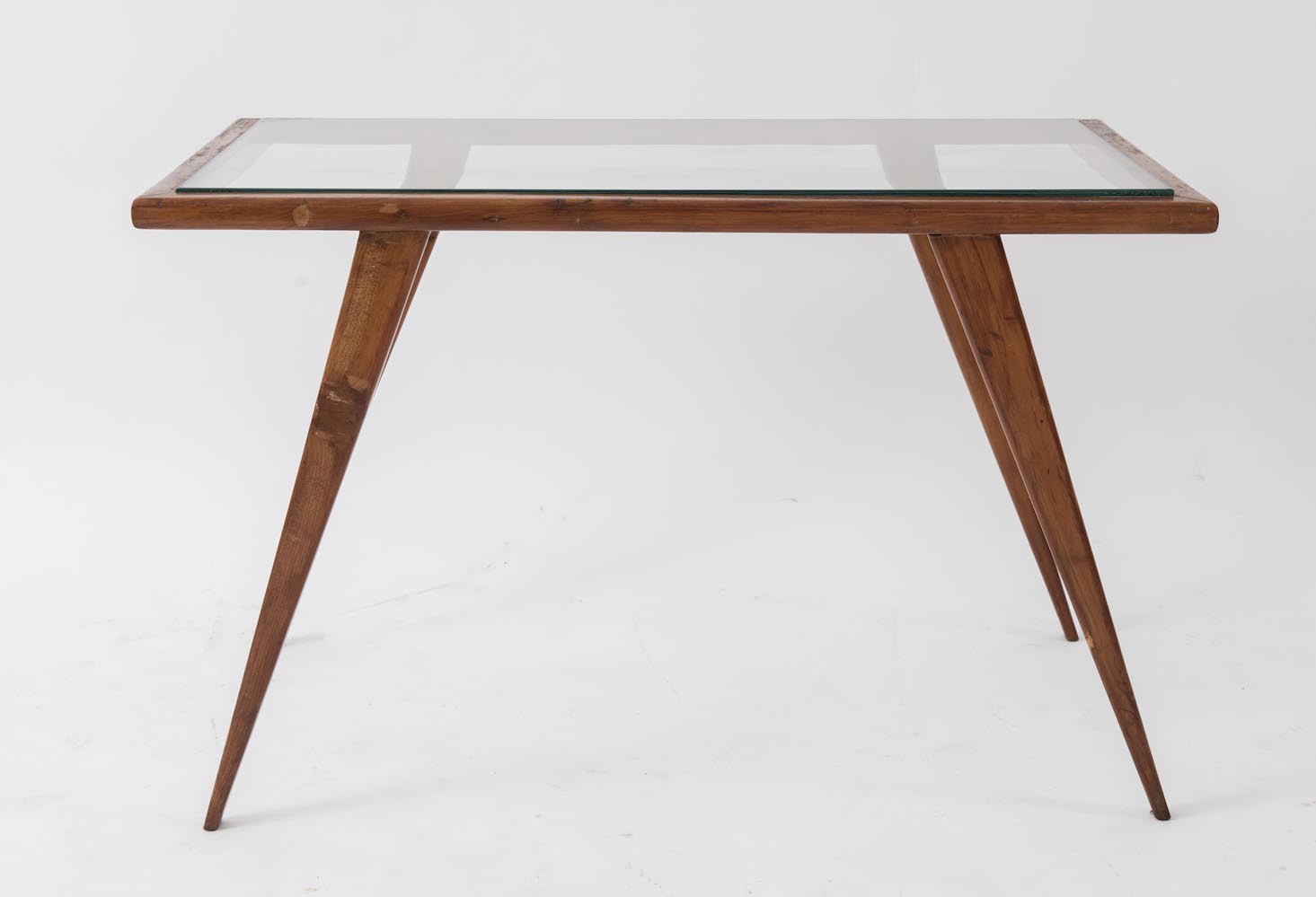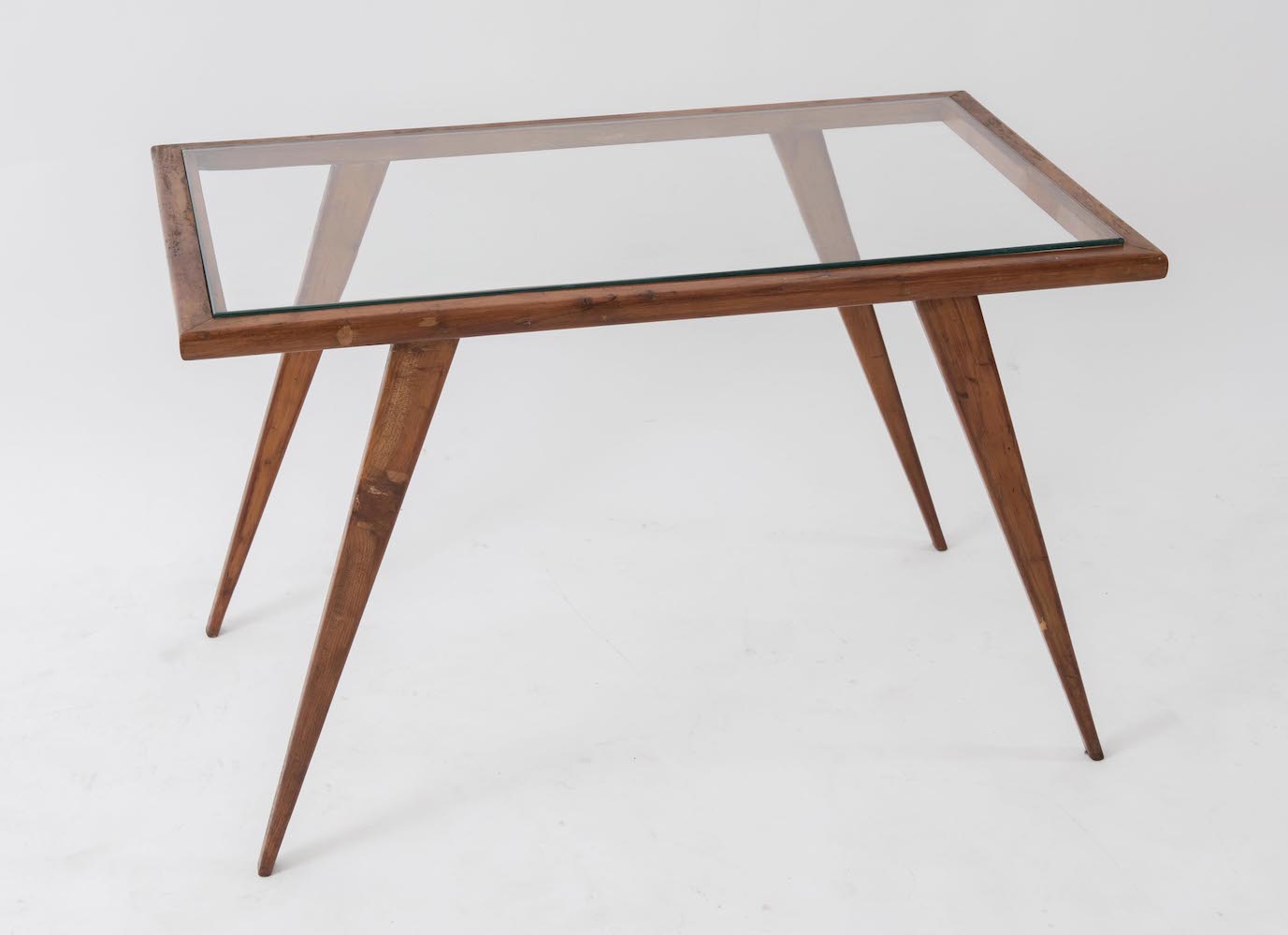 Tavolo da caffè in legno con piano in vetro. Prod. Italia, 1960 ca. Cm...