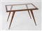 Tavolo da caffè in legno con piano in vetro. Prod. Italia, 1960 ca. Cm 49,5x79,5x49,5.