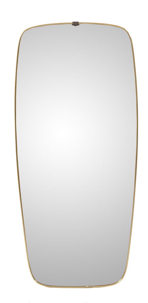 Specchio con cornice in ottone. Lievi difetti. Prod. Italia, 1960 ca. Cm 89x41.