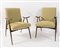 Coppia di poltrone in tessuto con struttura in legno. Prod. Italia, 1950 ca. Cadauna di cm 87x59x58,5.