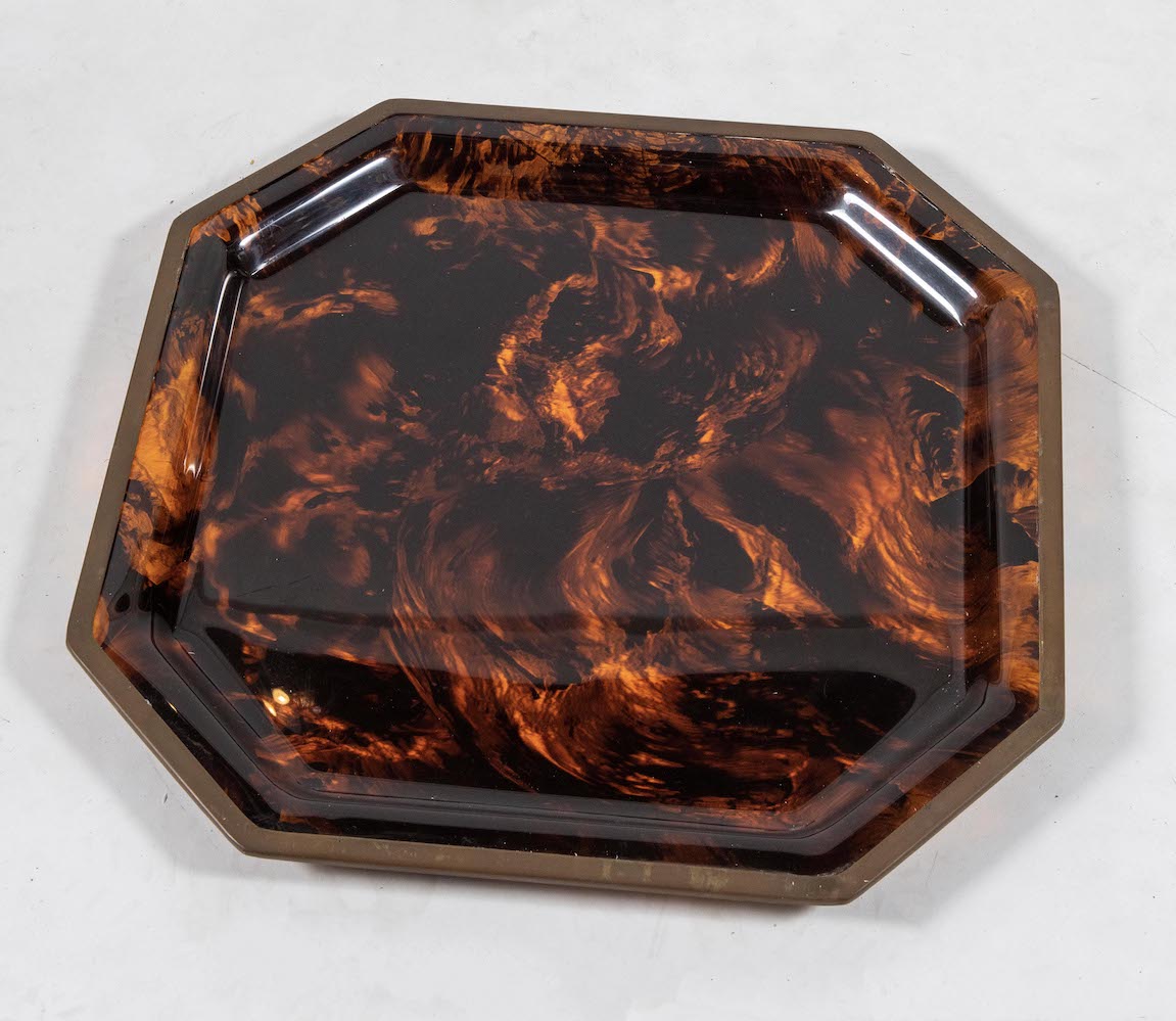ROMEO REGA, attr. Vassoio in metacrilato e bordo in ottone. Prod. Italia,...
