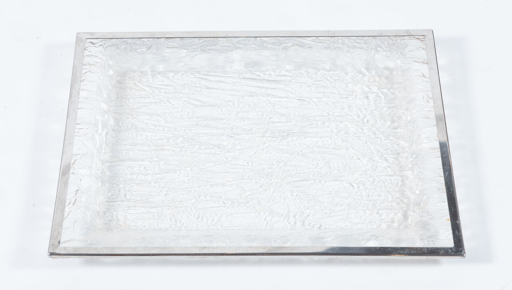 ROMEO REGA, attr. Vassoio in metacrilato e bordo cromo. Prod. Italia, 1970 ca. cm 53x41x2.