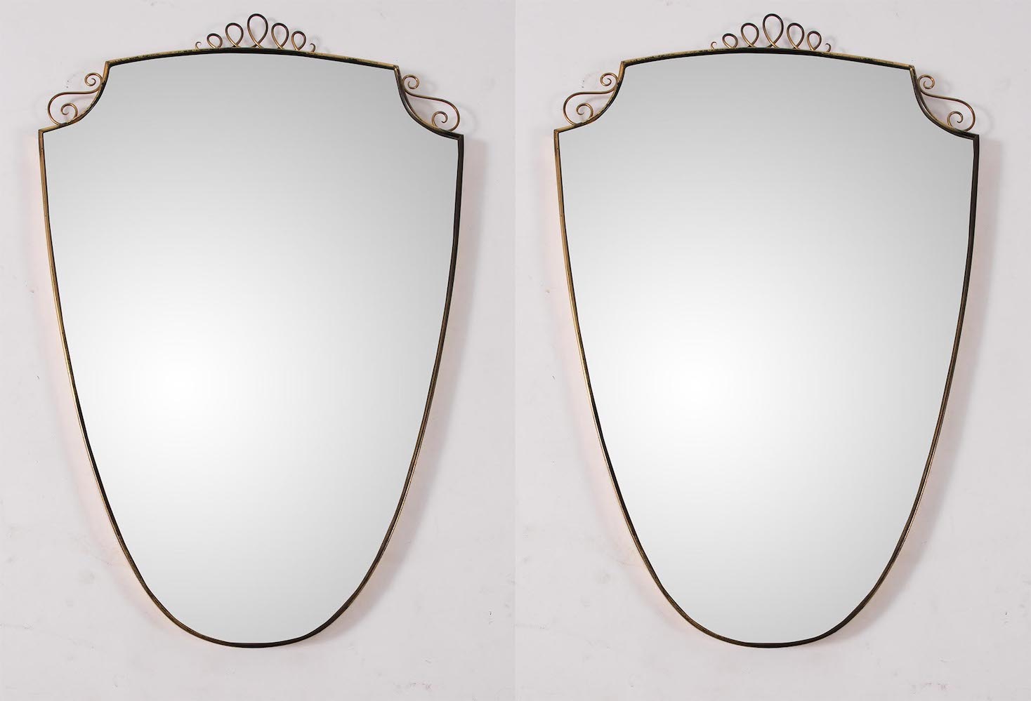 Coppia di specchi in ottone e struttura in legno. Prod. Italia, 1960 ca. Cadauno di cm 87x58x2.