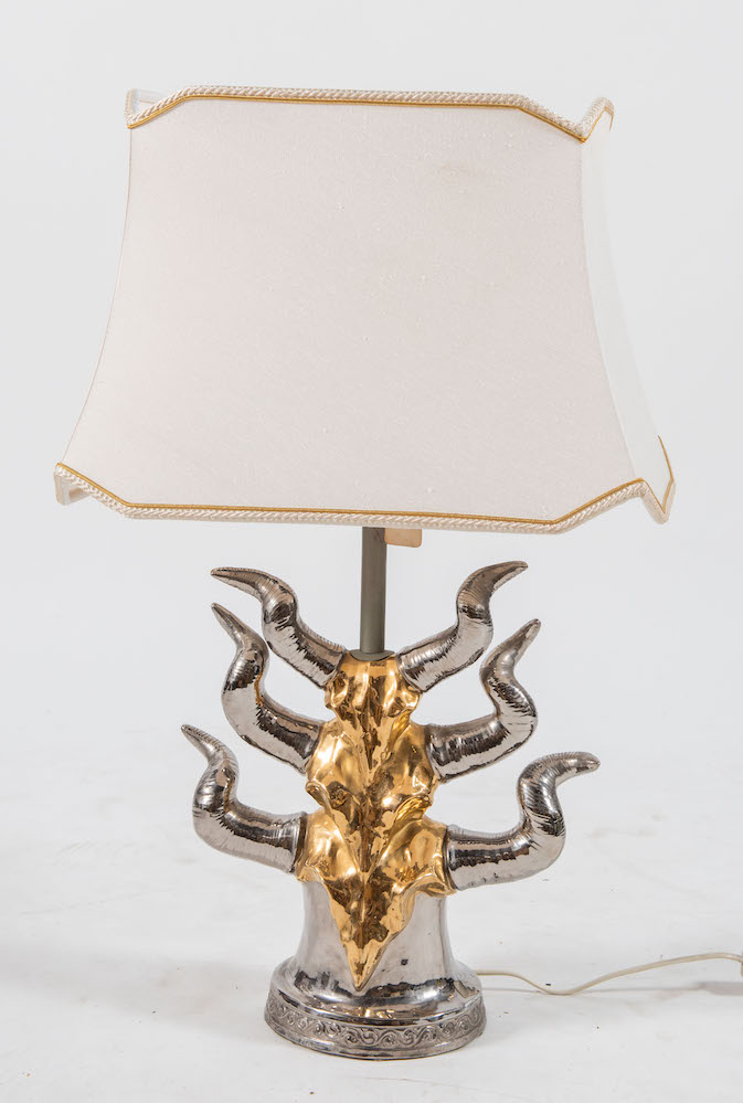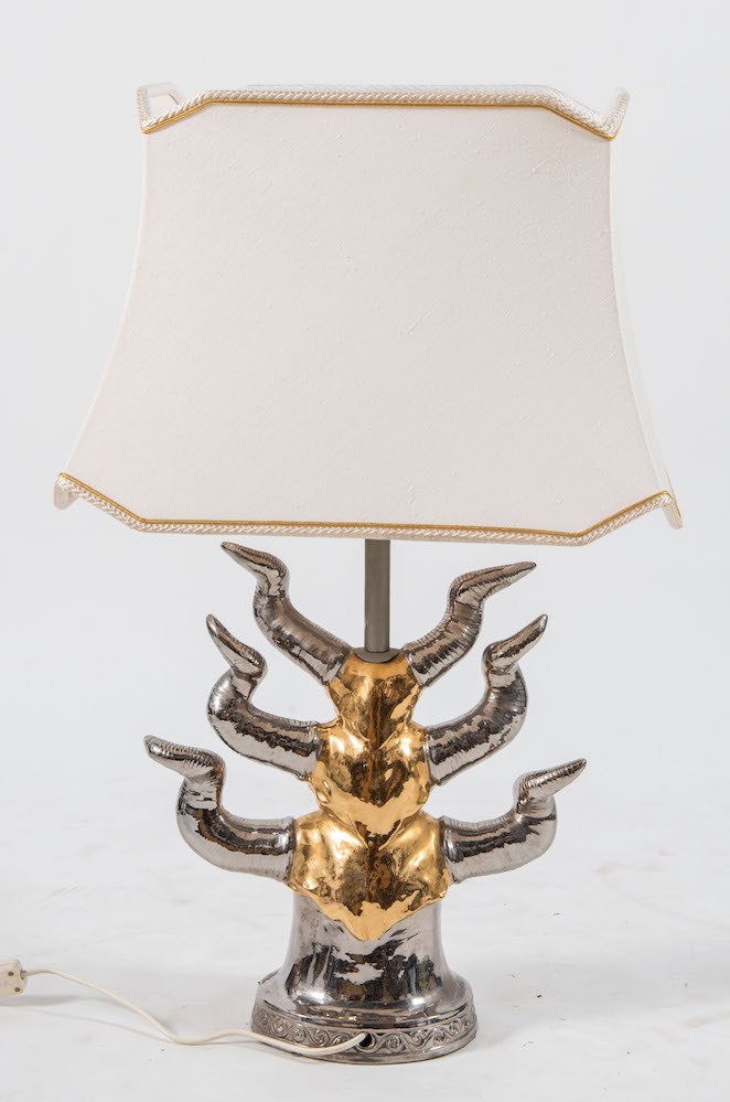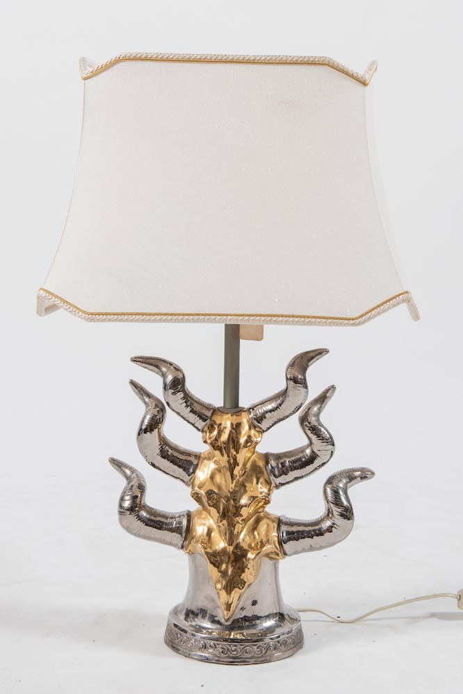 Lampada da tavolo in ceramica smaltata e argentata ’Totem’. Prod. Italia,...