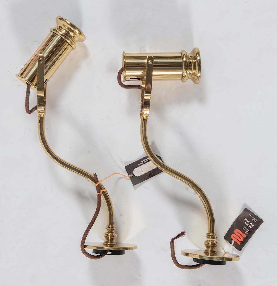 SERGIO BERNARDI Coppia di applique da muro in ottone e metallo. Marchio originale. Prod. Sergio Bernardi, Italia, 1970 ca. Cadauna di cm 36x16x10.