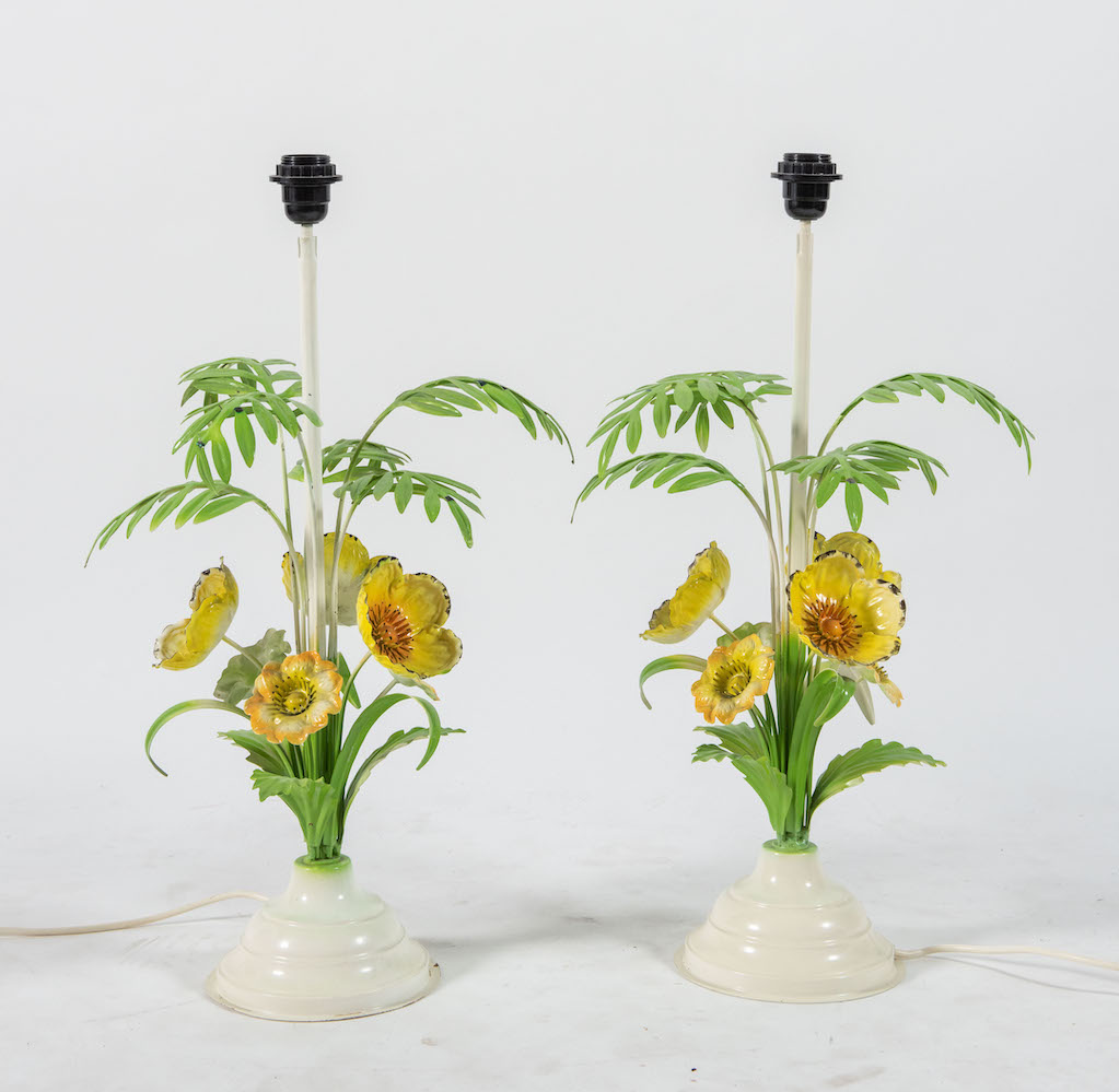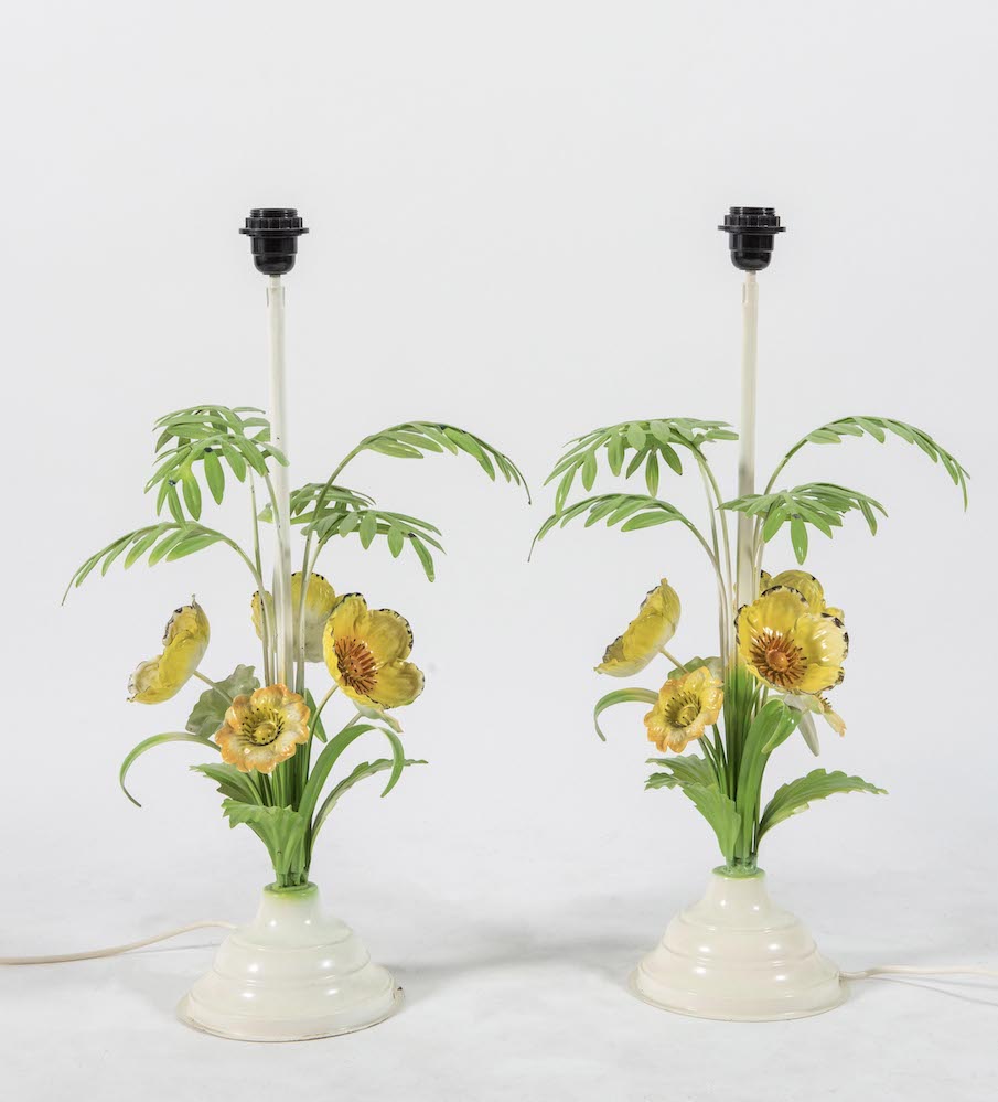 Coppia di lampade da tavolo in ferro battuto. Prod. Italia, 1980 ca. Cadauna di cm 67x39x39.