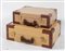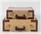 GIOVANNI PATRINI, attr. Coppia di valigie con angoli e maniglia in pelle e tessuto cerato. Prod. Italia, 1970 ca. Rispettivamente di cm 44,5x34,5x14 e cm 54,5x41,5x18.