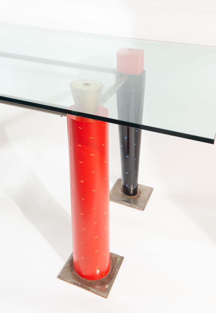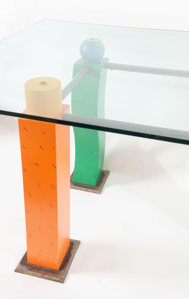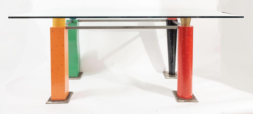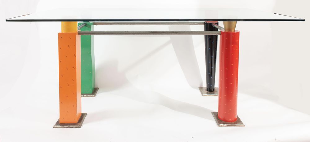Lotto 348 | Tavolo con struttura in metallo e piano in vetro. Prod. Italia, 1980 ca. Cm...