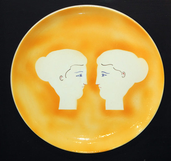 BUENO Antonio (Berlino 21/07/1918 - Firenze 26/09/1984) Profili, 1965 tecnica mista su piatto di porcellana diametro cm. 35 Firma 'A. Bueno' (al retro) Autentica dell'Archivio Antonio Bueno, con n° 143 G/N, in data 22/09/2005