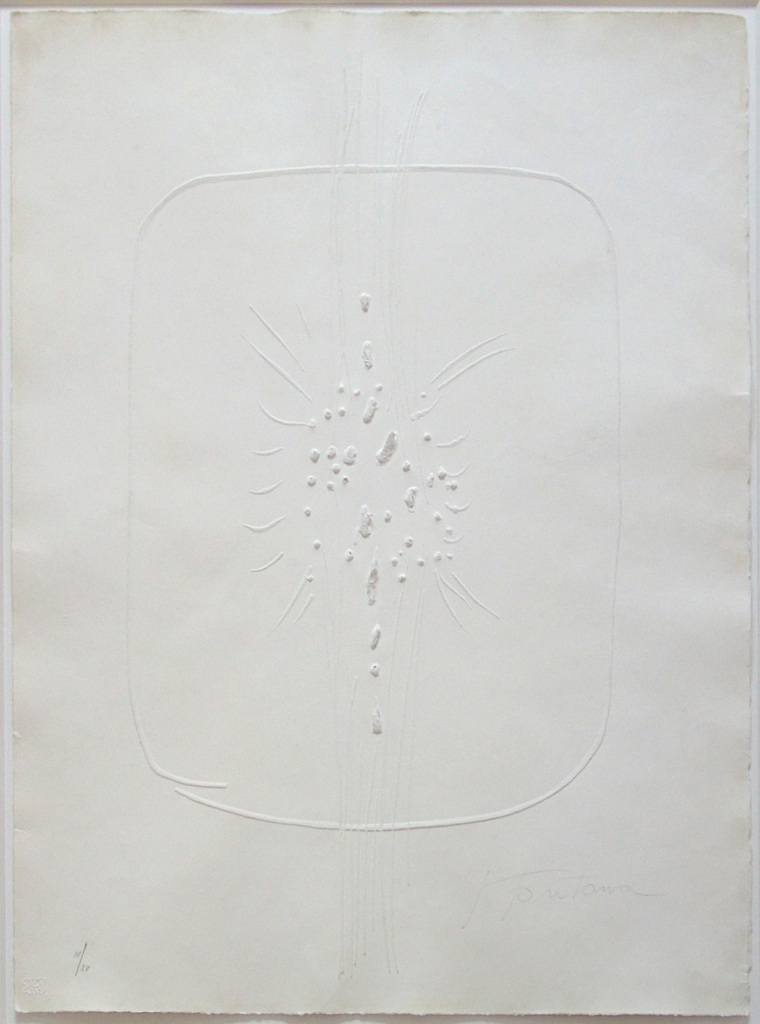 opera pubblicata in "Lucio Fontana, incisioni, grafica, multipli, pubblicazioni..." di Harry Ruhé e Camillo Rigo, Reverdito Edizioni 2007, opera pubblicata in "Doppio sogno dell'arte, 2RC - tra artista e artefice, Opere grafiche 1962-2007" a cura di Achille Bonito Oliva, Fondazione Arnaldo Pomodoro 2007