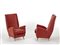 Coppia di poltrone. Produzione ISA, Ponte San Pietro, 1945ca. Struttura in legno, piedi in fusione di ottone, rivestimento in velluto rosso. (cm 69x110x95) (lievi difetti e restauri)