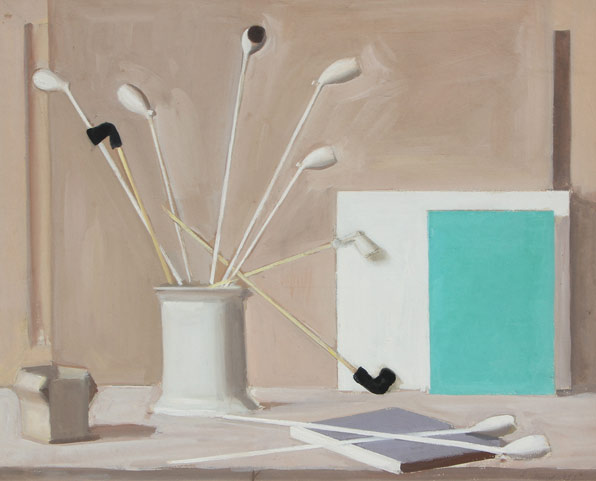 BUENO Antonio (Berlino 21/07/1918 - Firenze 26/09/1984) Vaso con pipe e libri, 1951 tempera su cartone cm. 42 X 50 Firma, data 'A. Bueno, 1951' (in basso a destra)
