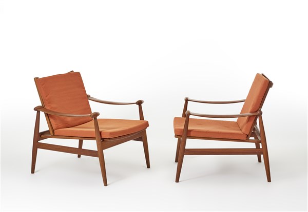 Finn Juhl Coppia di poltrone modello "133". Produzione France & Son, Danimarca,