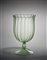 Glass-shaped vase with ribbed body, baluster-shaped stem and bell-shaped foot applied by heat. Execution by Venini, Murano, 1925-26. Transparent greenish blown glass. Corresponding to the drawing of furnace 3085. (h 29 cm.; d 17.5 cm.)